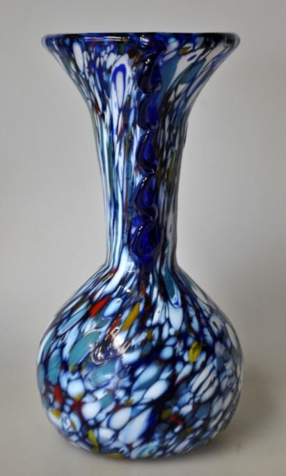 Murano Glass Vase, 20th century. Italy. Multicolored glass. With two handles. H: 19 cm. With original label from Murano.