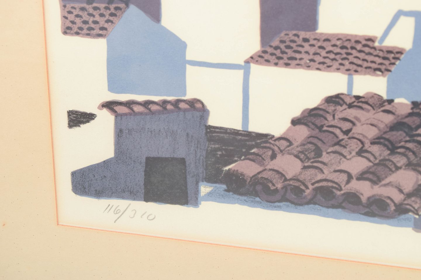 Lars Norman, colour lithograph, listed Swedish artist.Graphic composition with stylised architectural forms and figurative elements executed as a colour lithograph, signed in pencil and numbered 116/310.