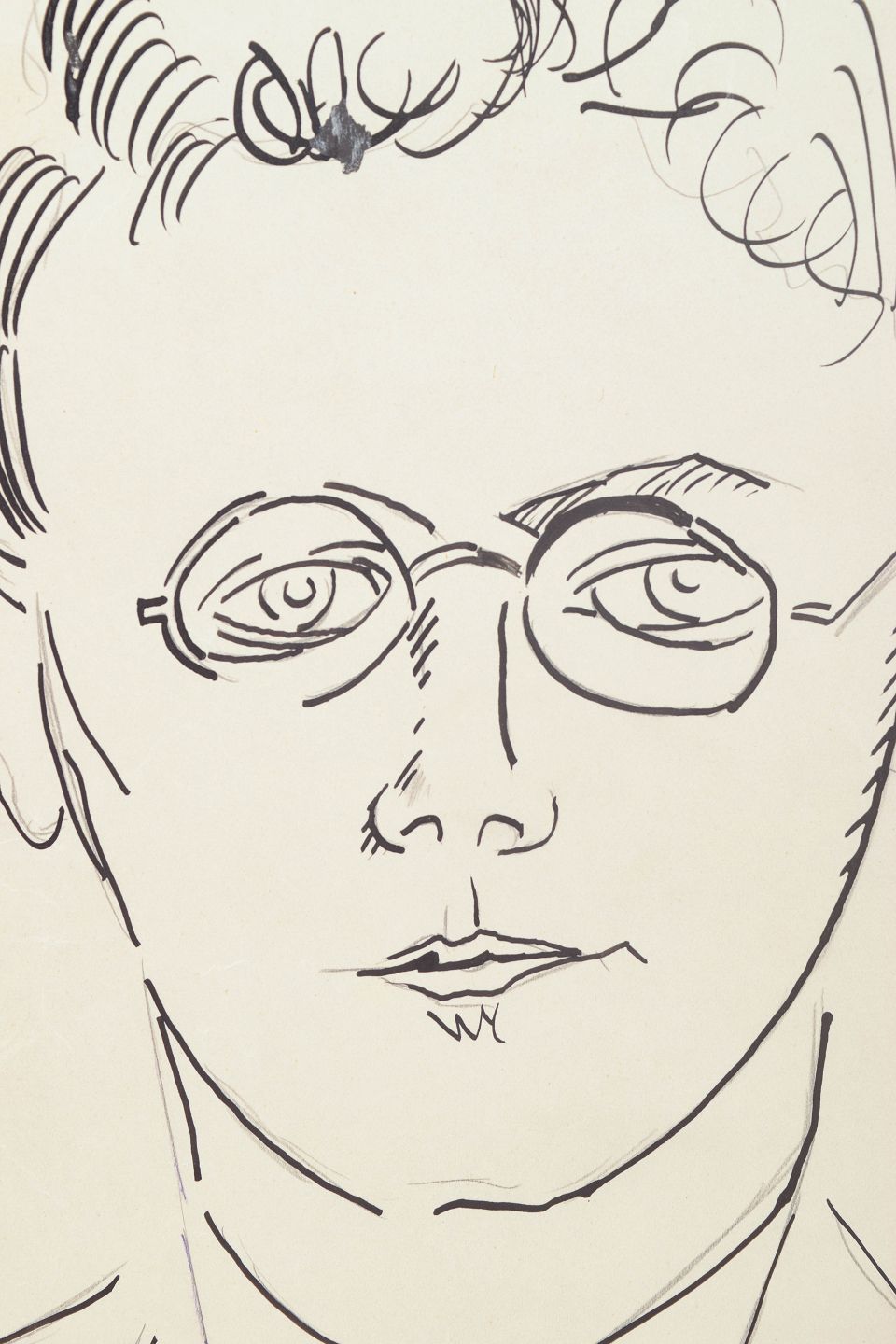Art deco portrait drawing executed on paper with clear and precise line work. The composition depicts a stylised male portrait wearing glasses, rendered in a simple graphic line characteristic of modernist drawing from the 1930s.