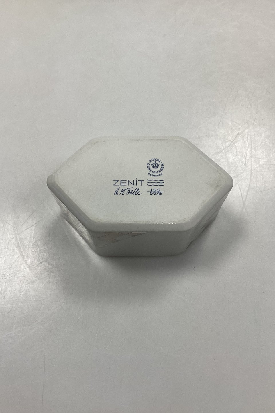 Royal Copenhagen Zenit Skål No. 155/5576. Designet af af Anne Marie Trolle.Måler 13,5 cm x 8,2 cm / 5,31 in. x 3,23 in.