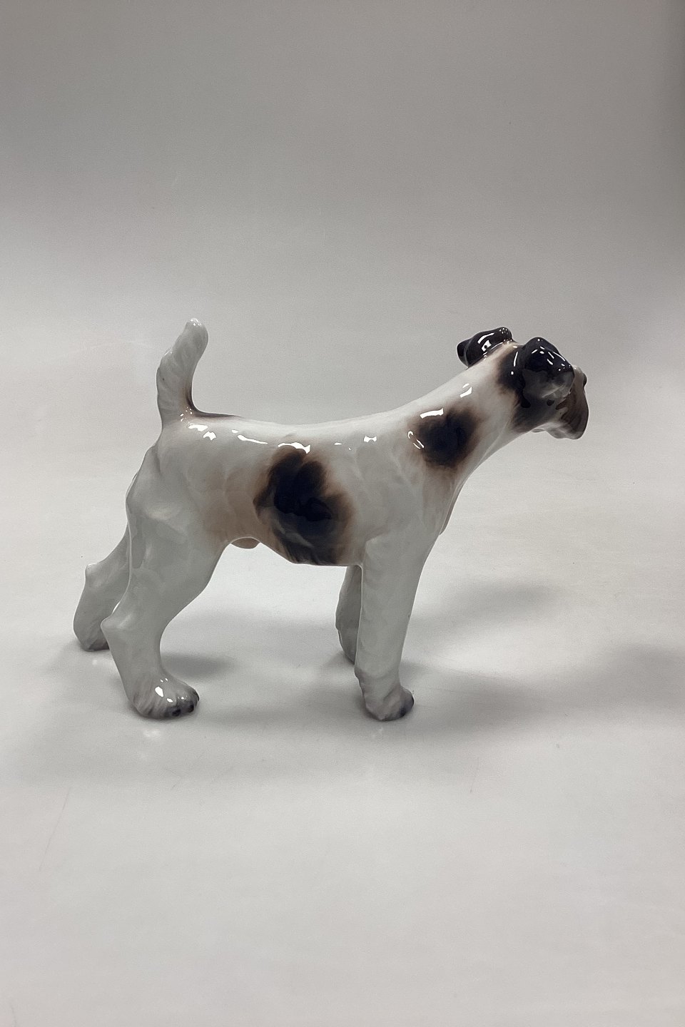 Dahl Jensen Figurine - Wire Fox Terrier No. 1009. White with dark markings.