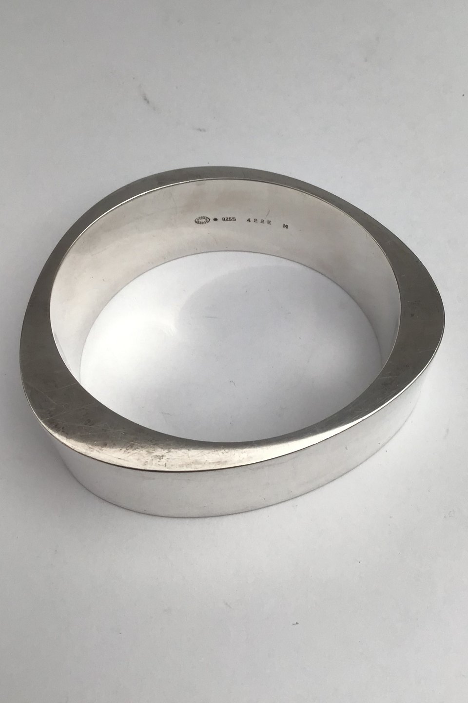 Georg Jensen Sterling Sølv Armring No. 422E Extra Lina ChristensenMeasures Size M Inside 5.8 cm x 6.6 cm (2.28 inch x 2.59 inch) Width 2.7 cm(1.06 inch) Weight 123.6 gr (4.36 oz)