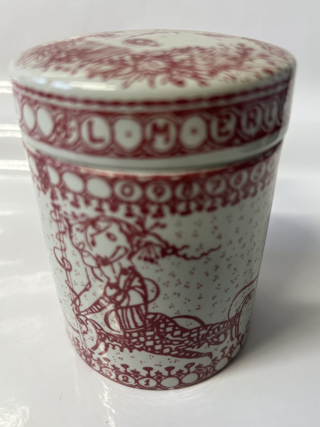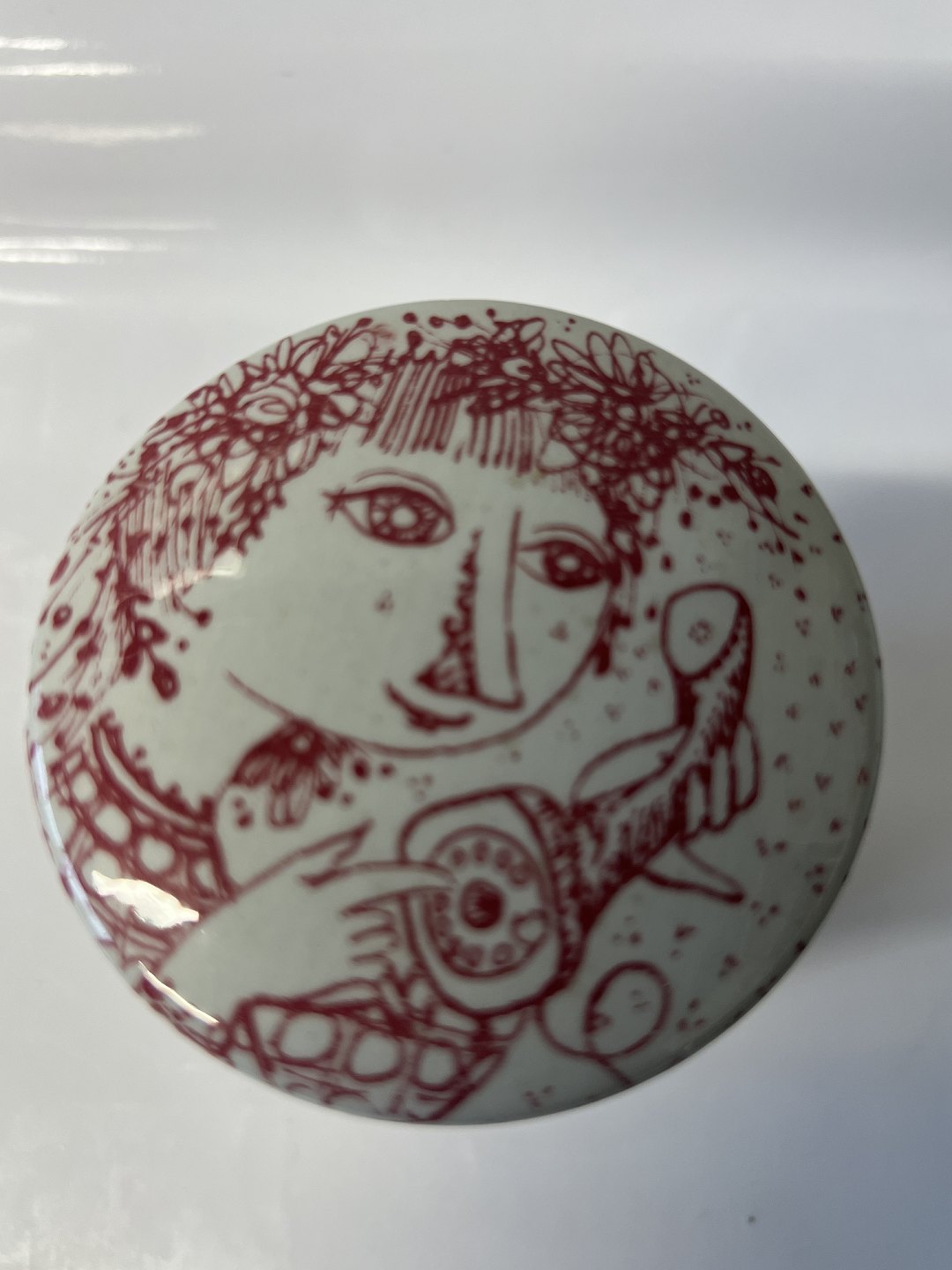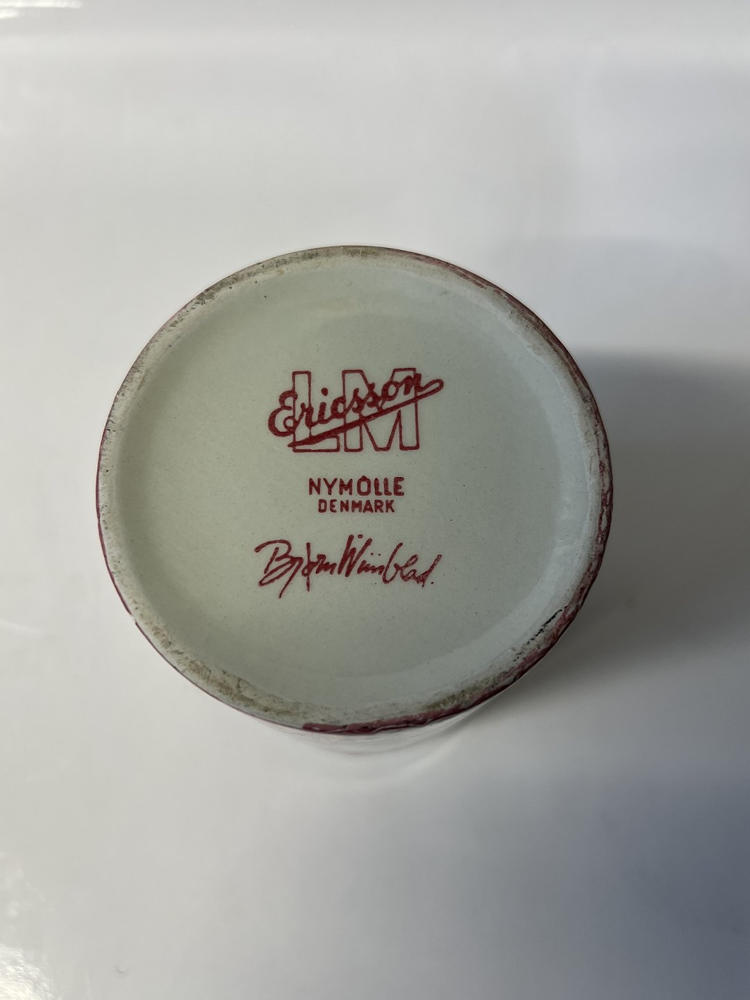 Bjørn Wiinblad ceramics made at Nymølle.Red tea can / bowl with lid from LM Ericsson.