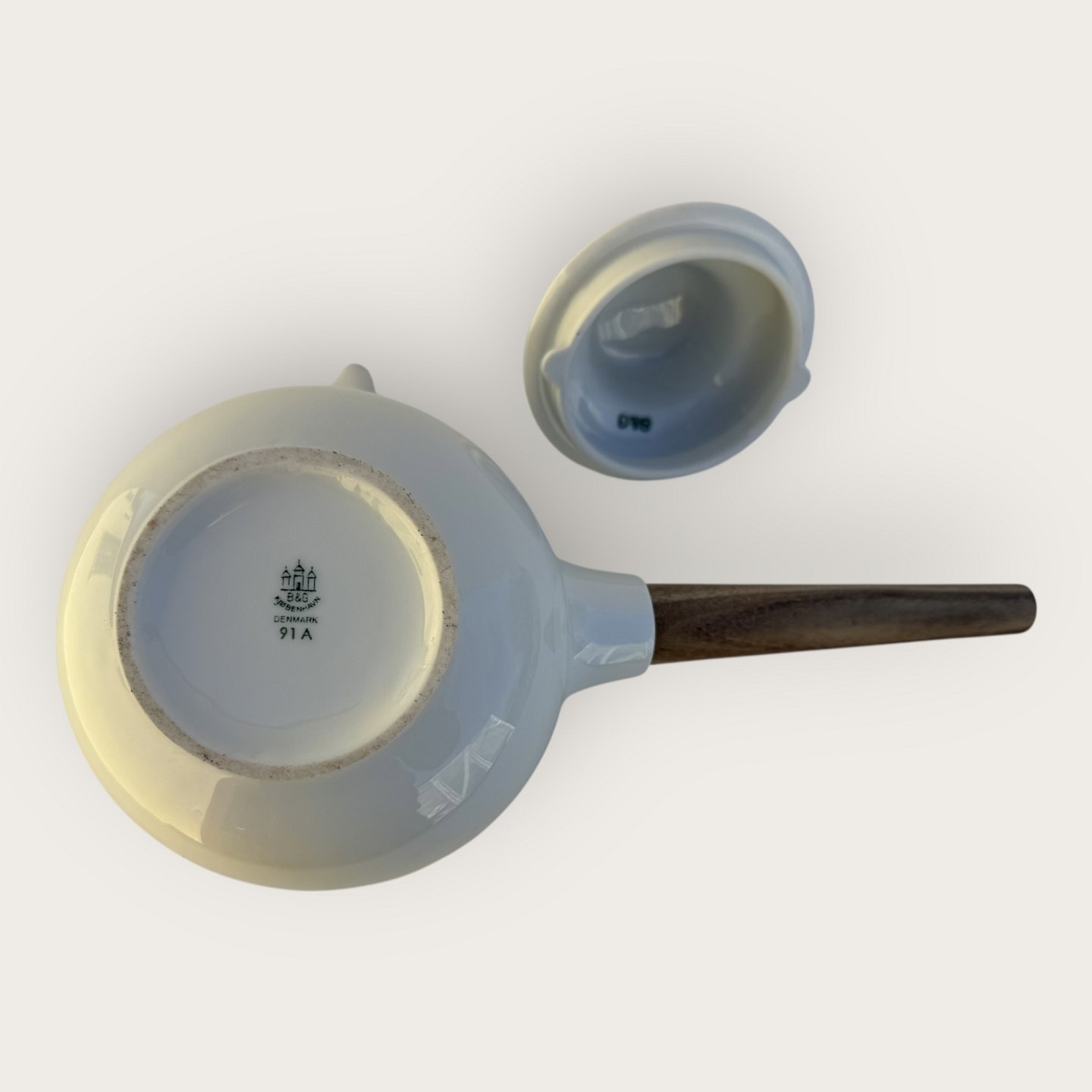 Bing & Grondahl, White Koppel, Teapot with teak handle from the 1960s, Dimensions approx. 18x28cm, Design Henning Koppel *fine condition*Stock: 1