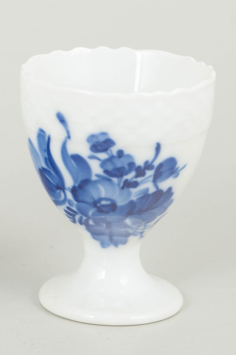 Royal Copenhagen, Blue Flower Curved set of three egg cups.Set of three porcelain egg cups decorated with hand-painted blue floral motif in relief. Model number 10/1568, 1st factory quality, early 20th century.