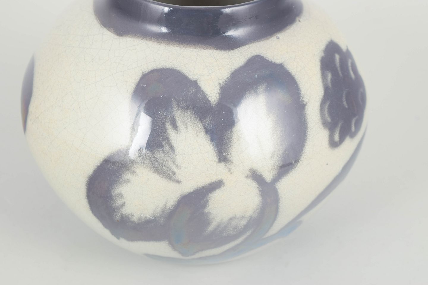 Edgar Böckman, unique vase.Organically shaped ceramic vase with a rounded body and hand-painted decoration in blue-violet tones on a light ground. Signed EB to the base.