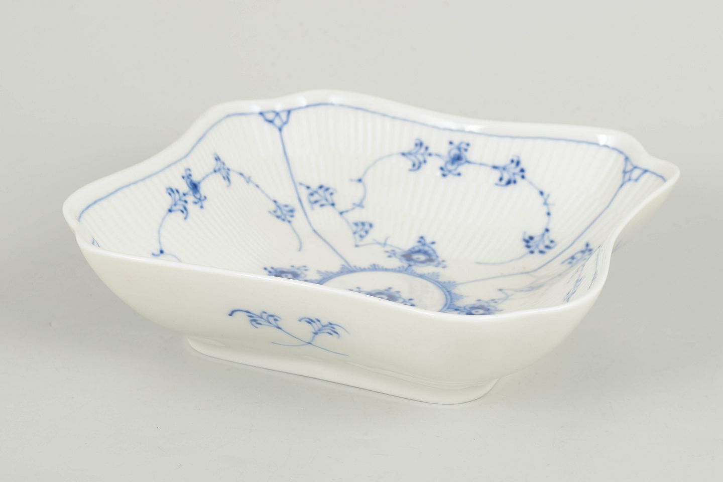 Royal Copenhagen, Blue Fluted Plain square dish.Square porcelain dish decorated in underglaze blue with the classic Blue Fluted Plain pattern. Model 1/26, first quality, dated 1966.