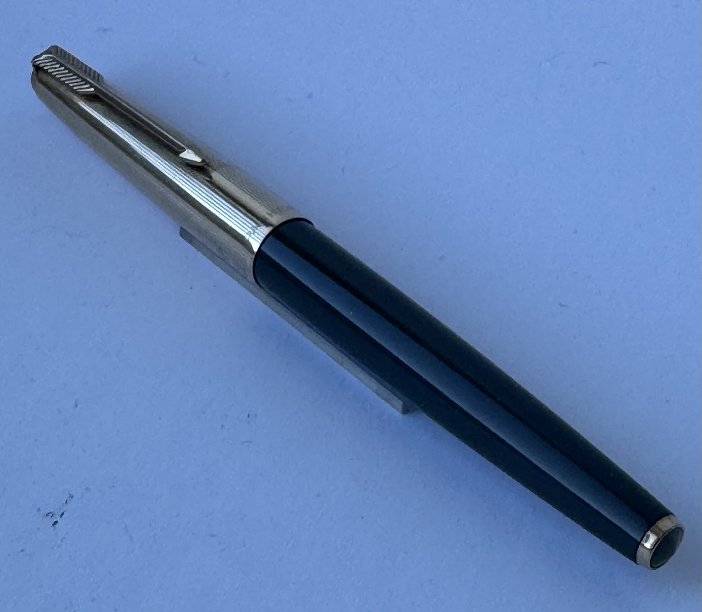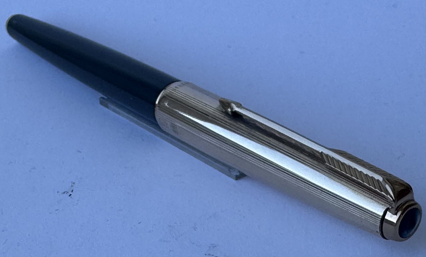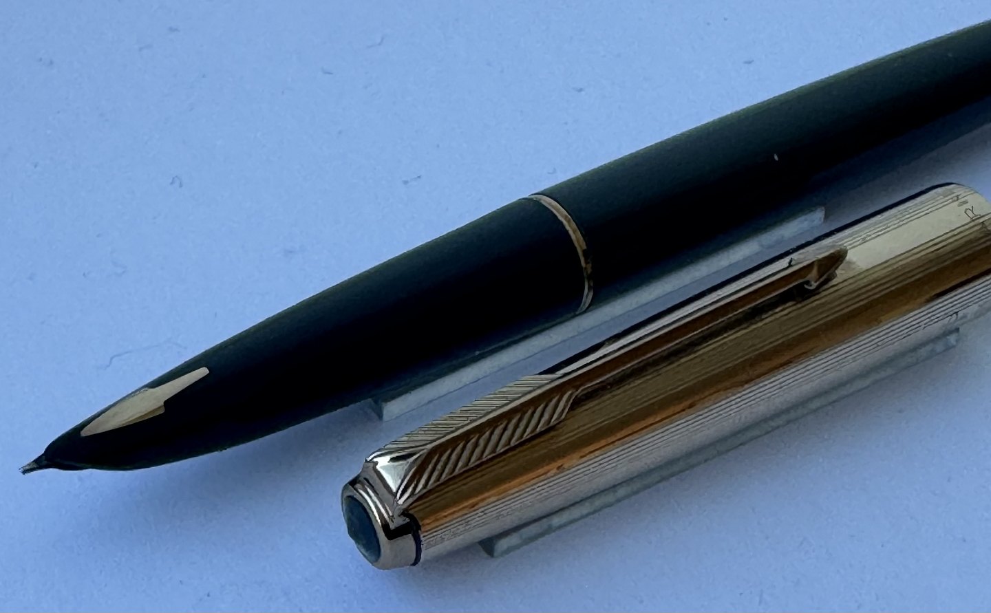 Grey Parker 61 fountain pen with gold double cap. Ready to be used. Appears in good and functional condition. Used very little. No special signs of wear. L. 13.3 cm Dealer