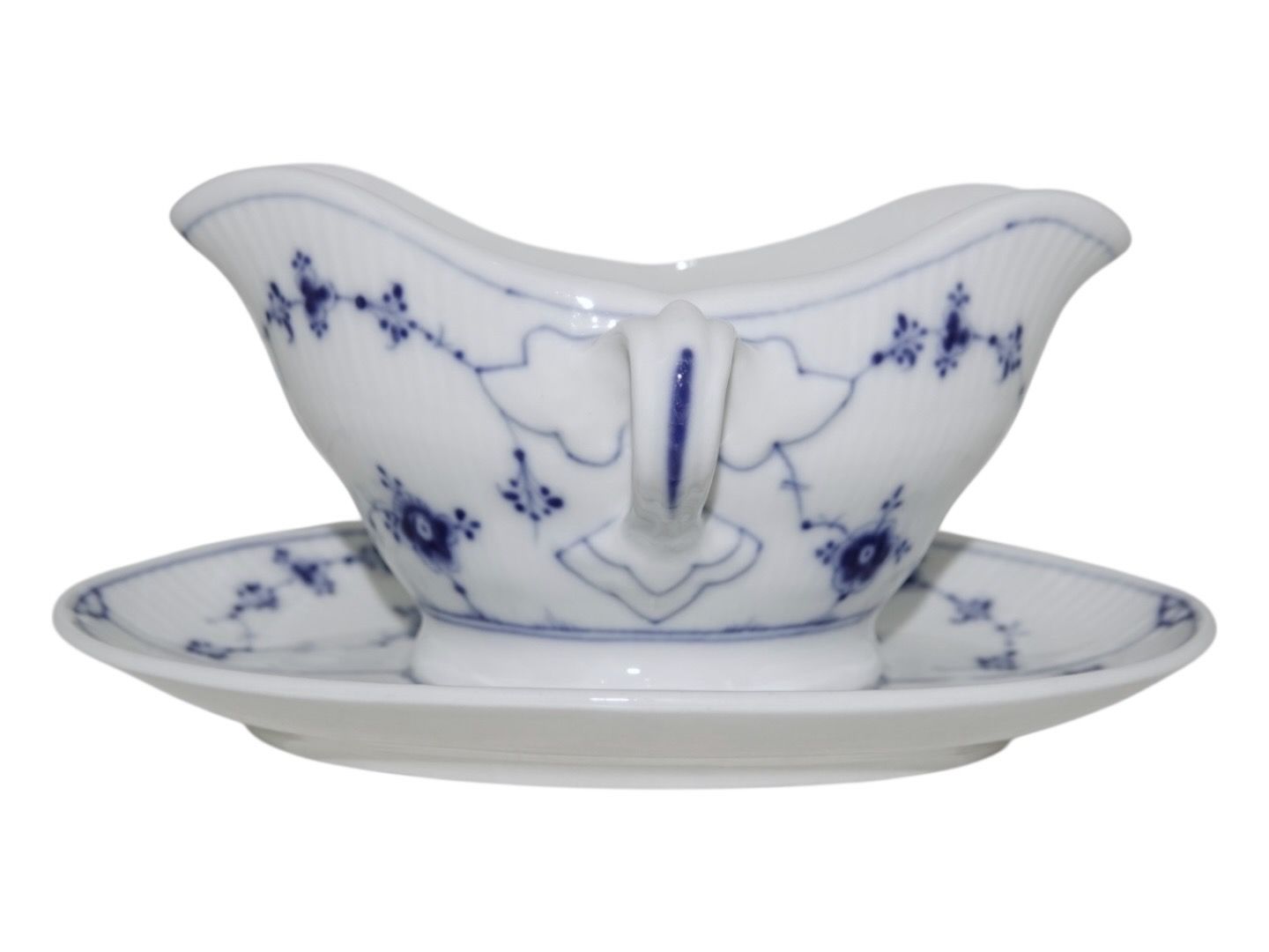 Bing & Grøndahl Blue Traditional (Blue Fluted), gravy boat.The factory mark tells, that this was produced between 1902 and 1914.