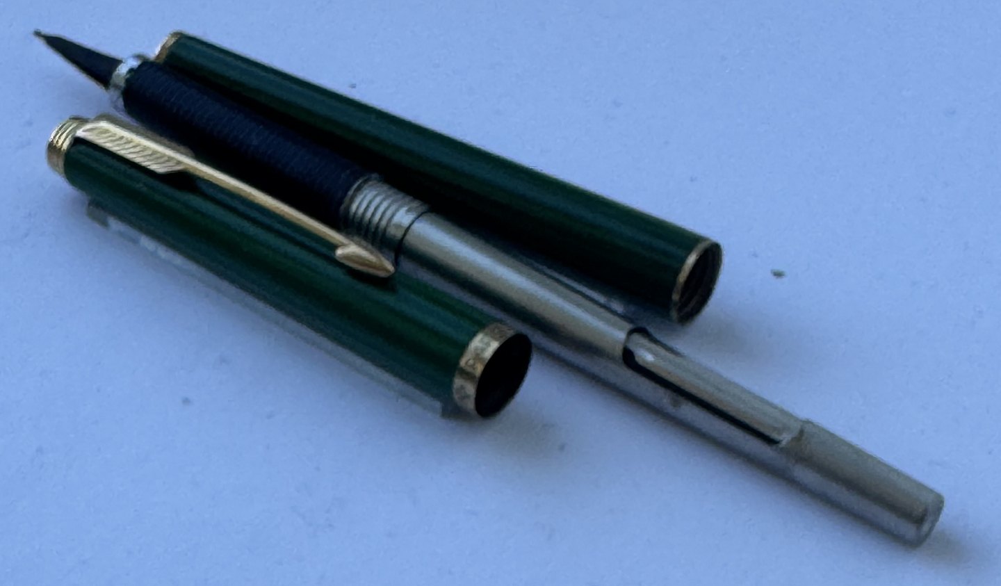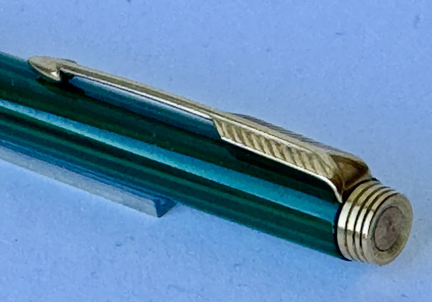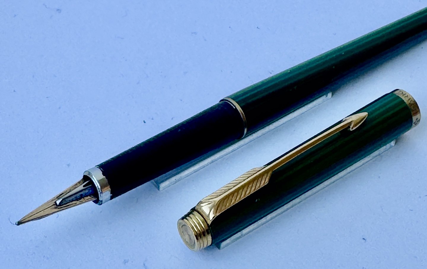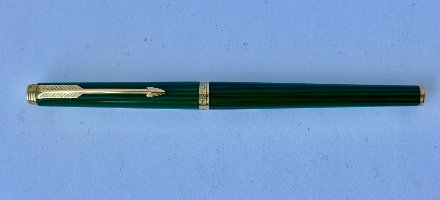 Slim green striped Parker 180 Malachite fountain pen. Made in France in the late 1970s. Ready to use. All parts original. L. 13.3 cm