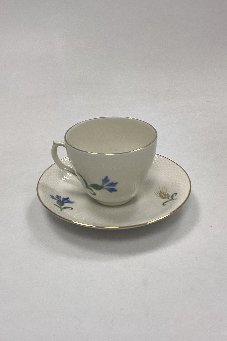 Royal Copenhagen Blue Cornflower Coffee Cup No. 1870Cream-colored frame with Blue Cornflower motifs and Gold rim