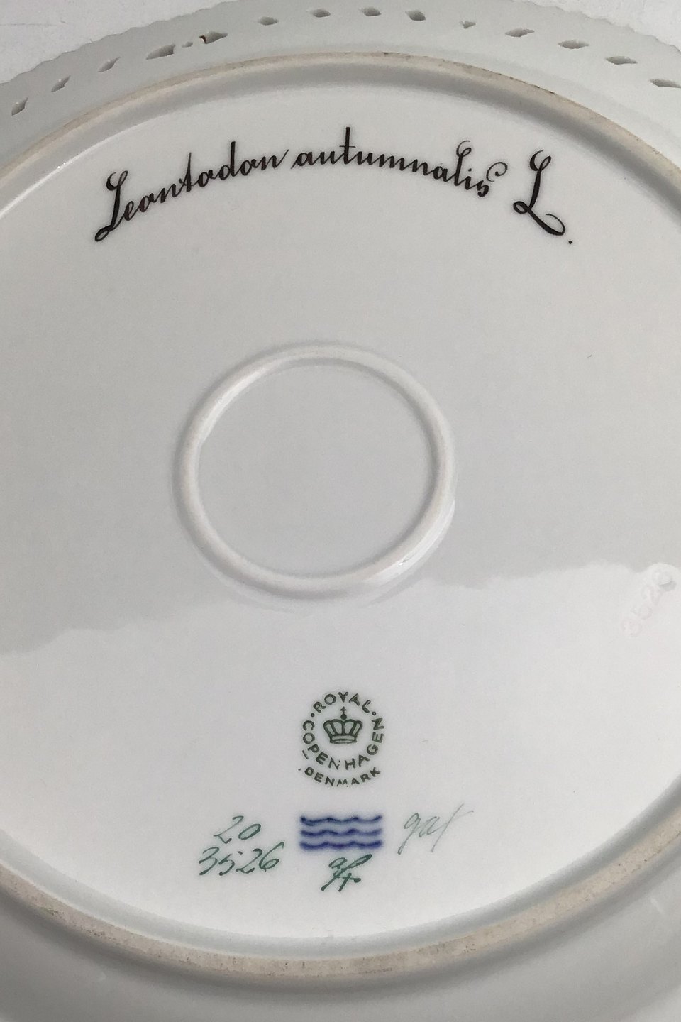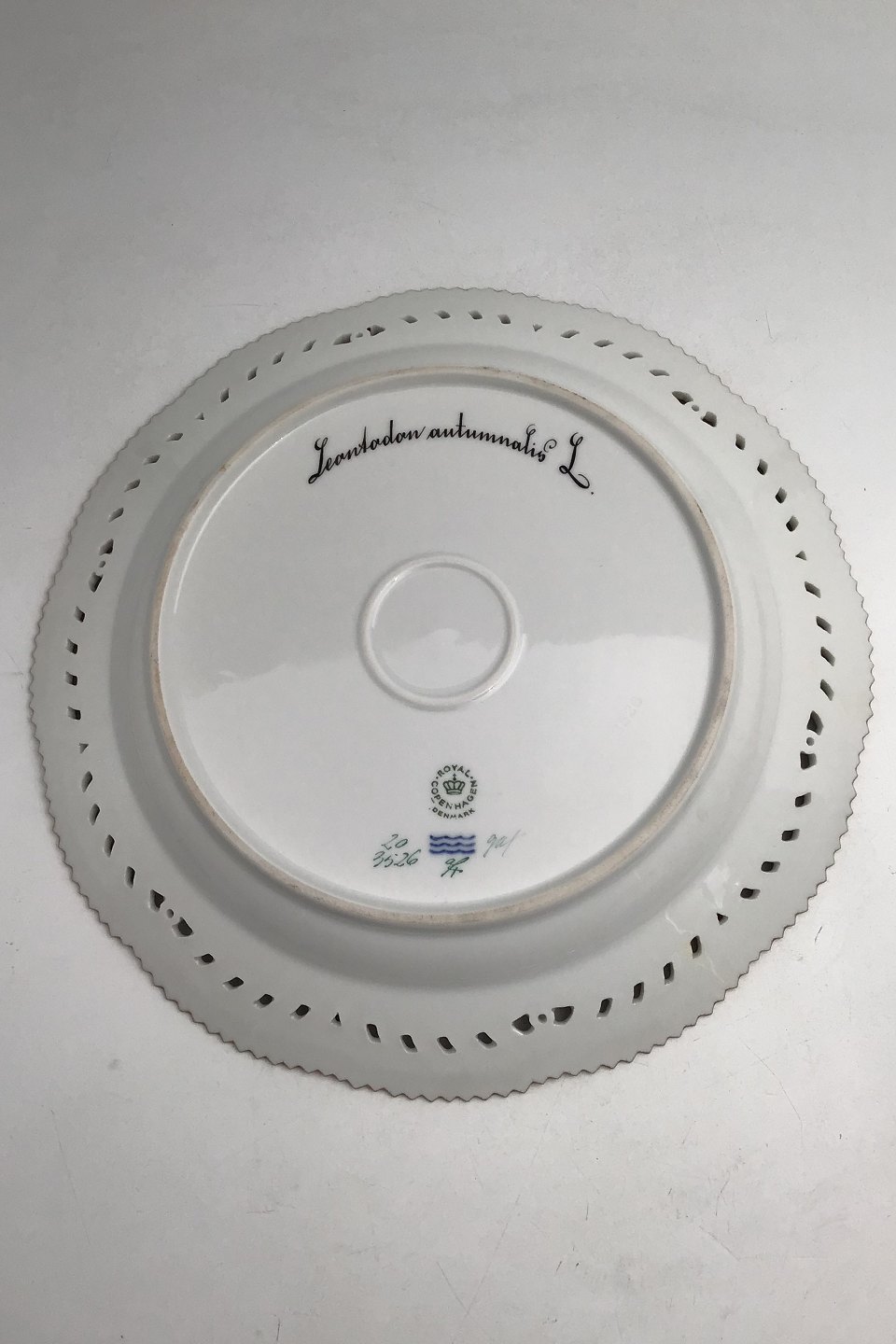 Royal Copenhagen Flora Danica Plate with pierced border No. 20/3526. Measures 27cm / 10.63 inch. 1st Quality Latin name: Leontodon autumnalis L.