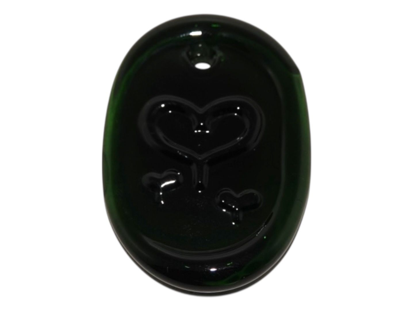 Holmegaard small dark green suncatcher with heart from the 1970'es.Measures 5.7 by 3.4 cm.