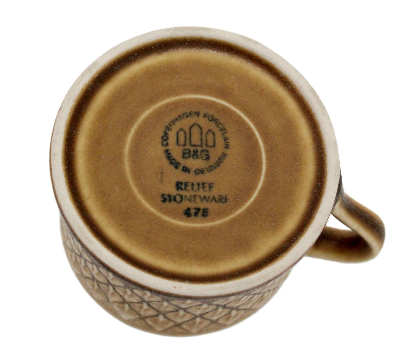 Kopperne fås med følgende stempler Bing & Grøndahl, Kronjyden og Nissen. Kopper uden stempel er fra Kronjyden, hvor der har været en papirlabel på som er faldet af med tiden. ARKIV fotos. Flot stand. Pris: 175 kr. stk. Lager: 10