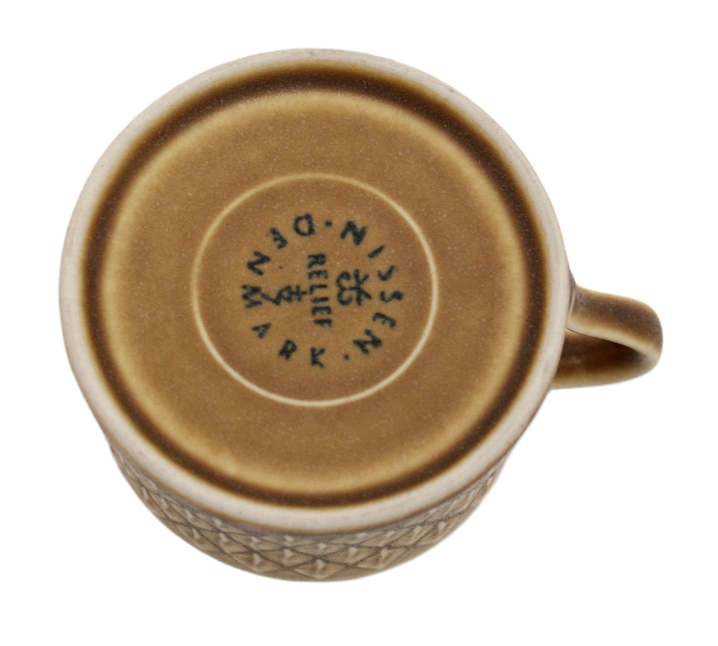 Kronjyden/Nissen/Bing & Grøndahl, Relief Tekop med underkop. Designet af Jens Harald Quistgaard. Højde 6 cm. Diameter 7,5 cm.