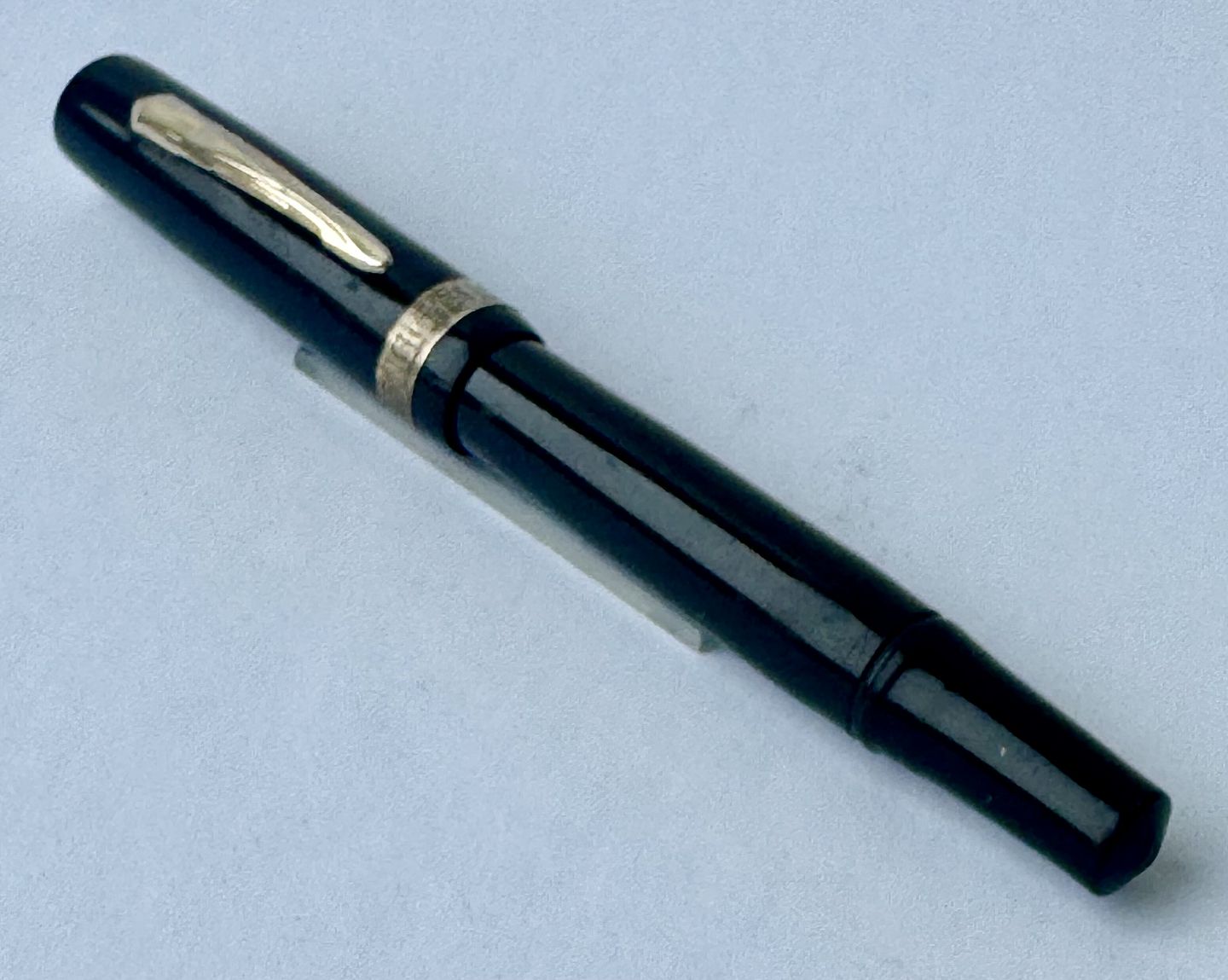 Black Miller No. 635 fountain pen. Push button filler.