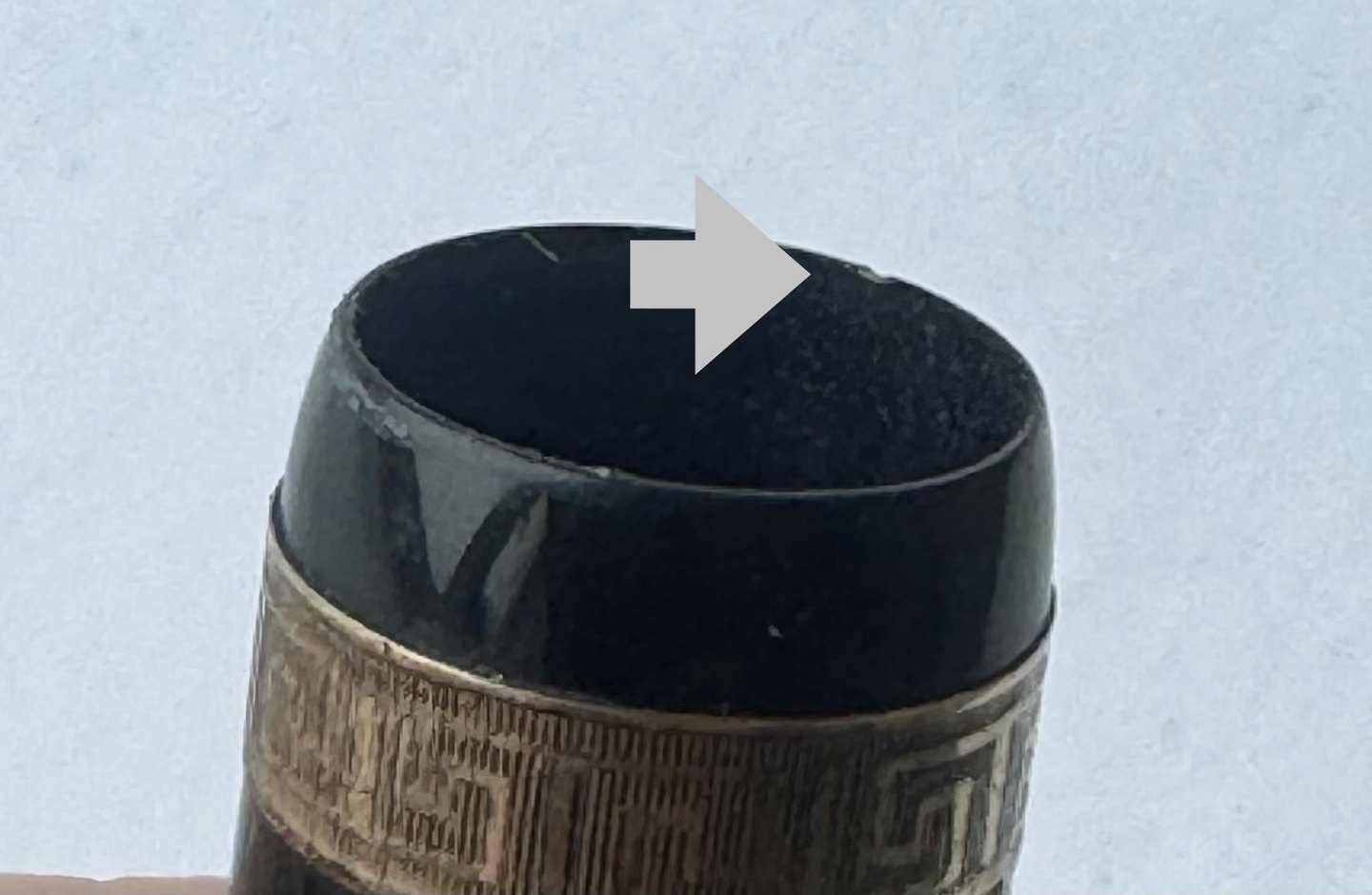 A new rubber sack must be inserted before the pen can take up ink and write again. Apart from a small chip on the cap (see photo), the pen is in good condition. All parts are original to this model. Inkluder the 14 carat gold nib. Length 12.6 cm