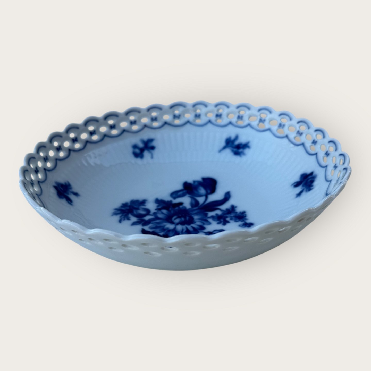Schumann, Germany, bowl with openwork edge (reticulated) with blue floral decoration, diameter 21cm, height 6cm *fine condition*Stock: 1