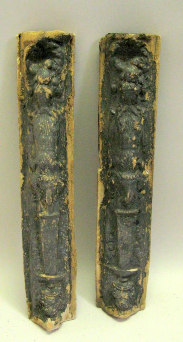 Pair fireplace columns, 17th century. Renaissance. Decorated with hermas and rams. H: 44 cm. Germany.Item number: 6954
