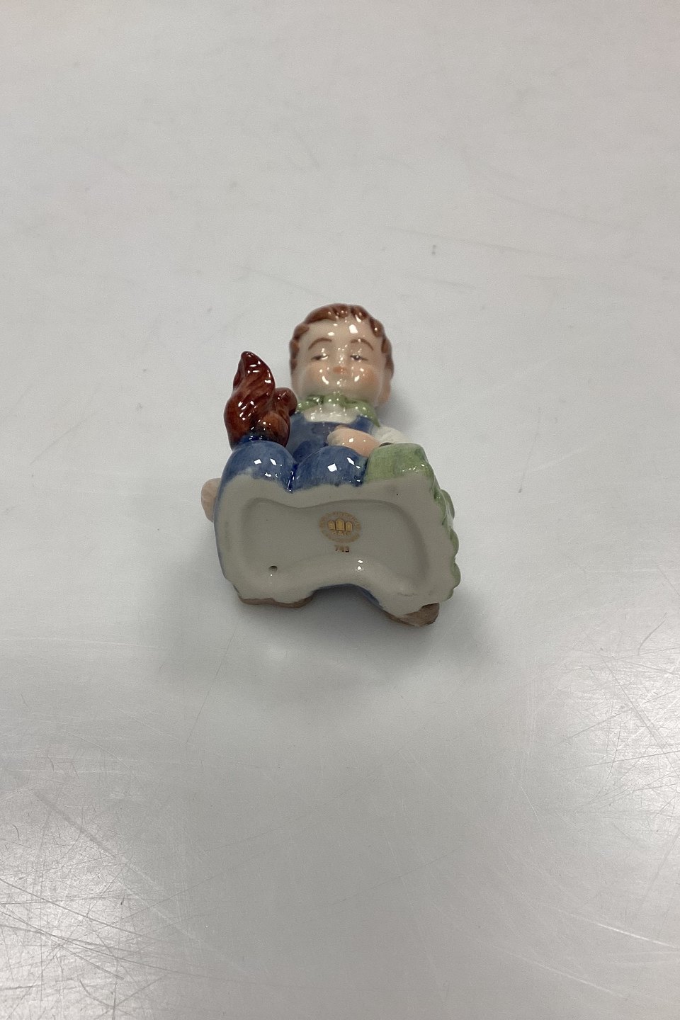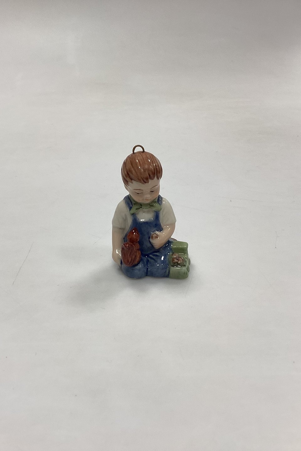 Bing and Grøndahl Collections 2001 Christmas Ornament - Christian No. 743. Designed by Sven Vestergaard. Boy with train and squirrel. Figurine for hanging.Measures 6 cm / 2.36 in.