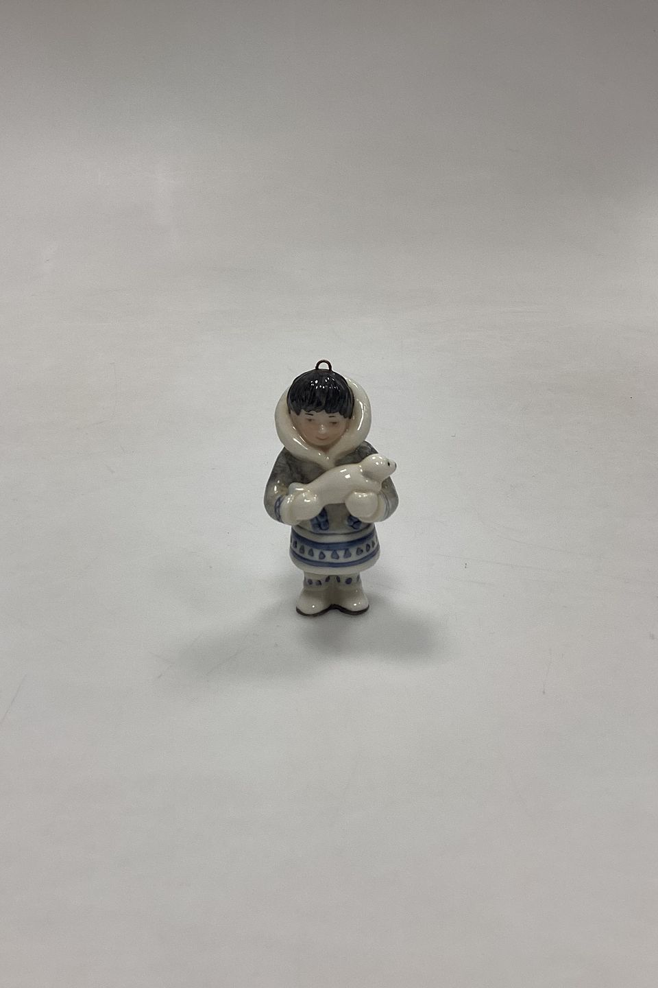 Royal Copenhagen Children's Christmas 2005 Christmas Ornament - Greenlandic Boy No. 153. Designed by Ingrid Jensen.Measures 7 cm / 2.75 in.