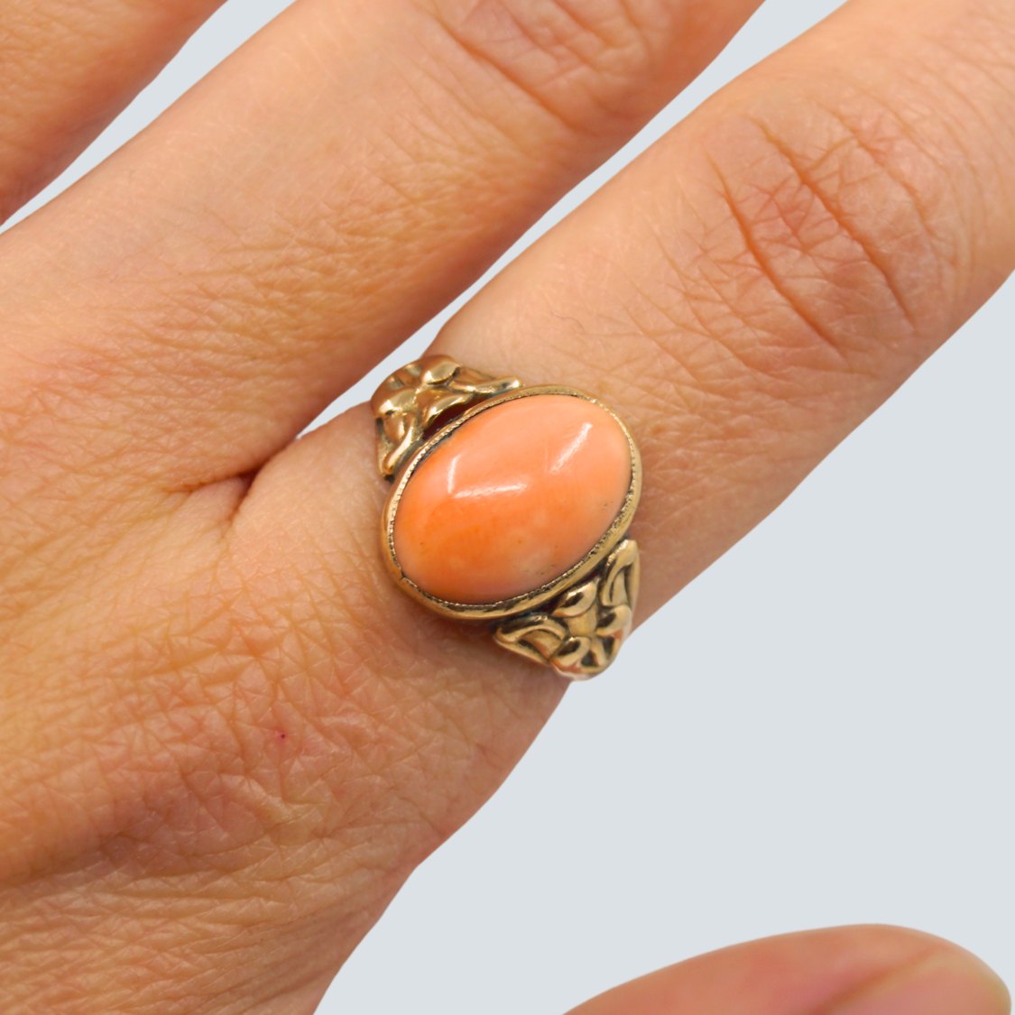 A ring in 14k gold set with a coral.From 1920.