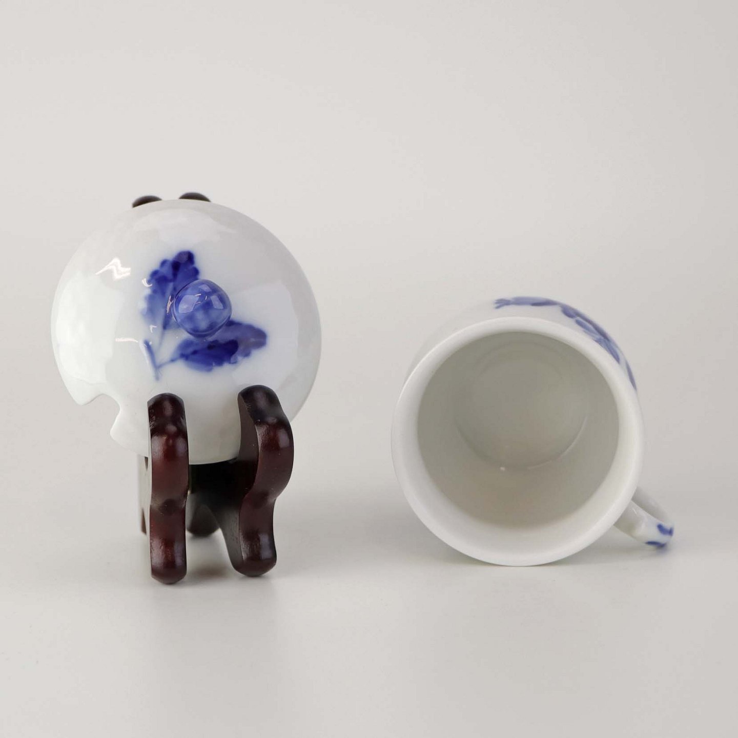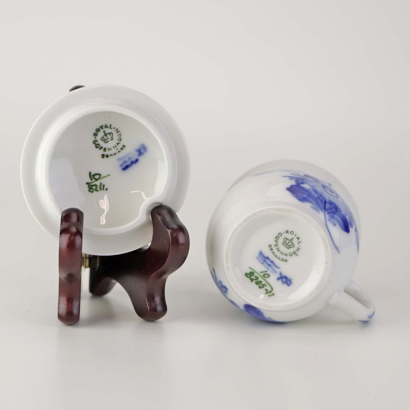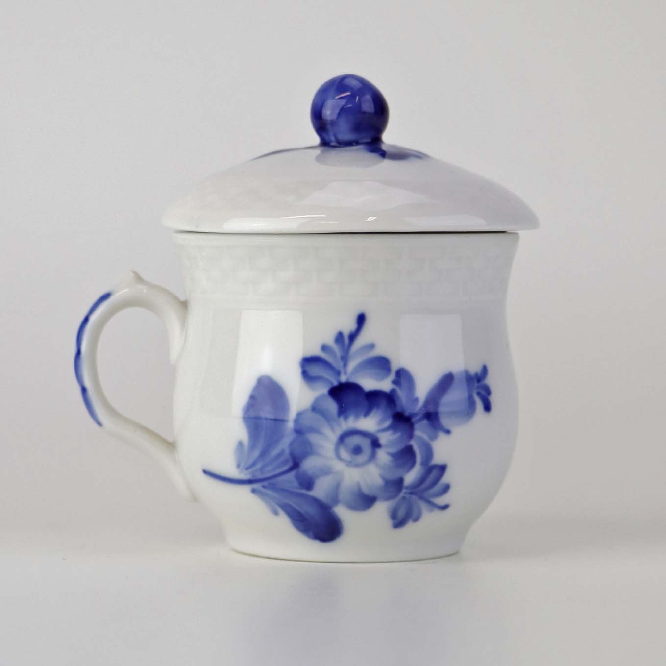 Sennepskop i kongeligt porcelæn fra stellet Blå Blomst flettet. Nr. 10/8211 og 10/8205-11 .Producent Royal Copenhagen