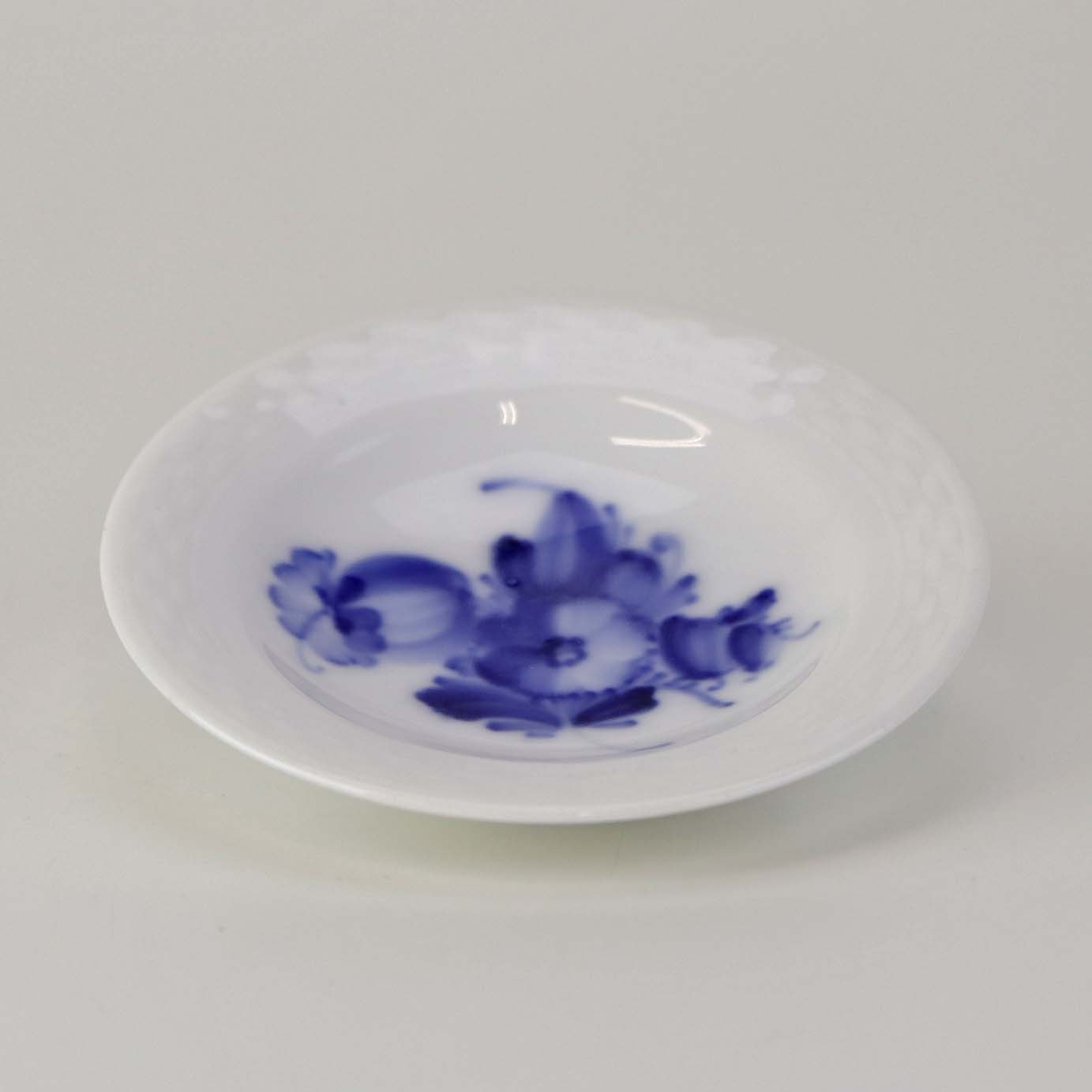 Lille rund asiet i kongeligt porcelæn fra stellet Blå Blomst flettet. Nr. 10/8167Producent Royal Copenhagen