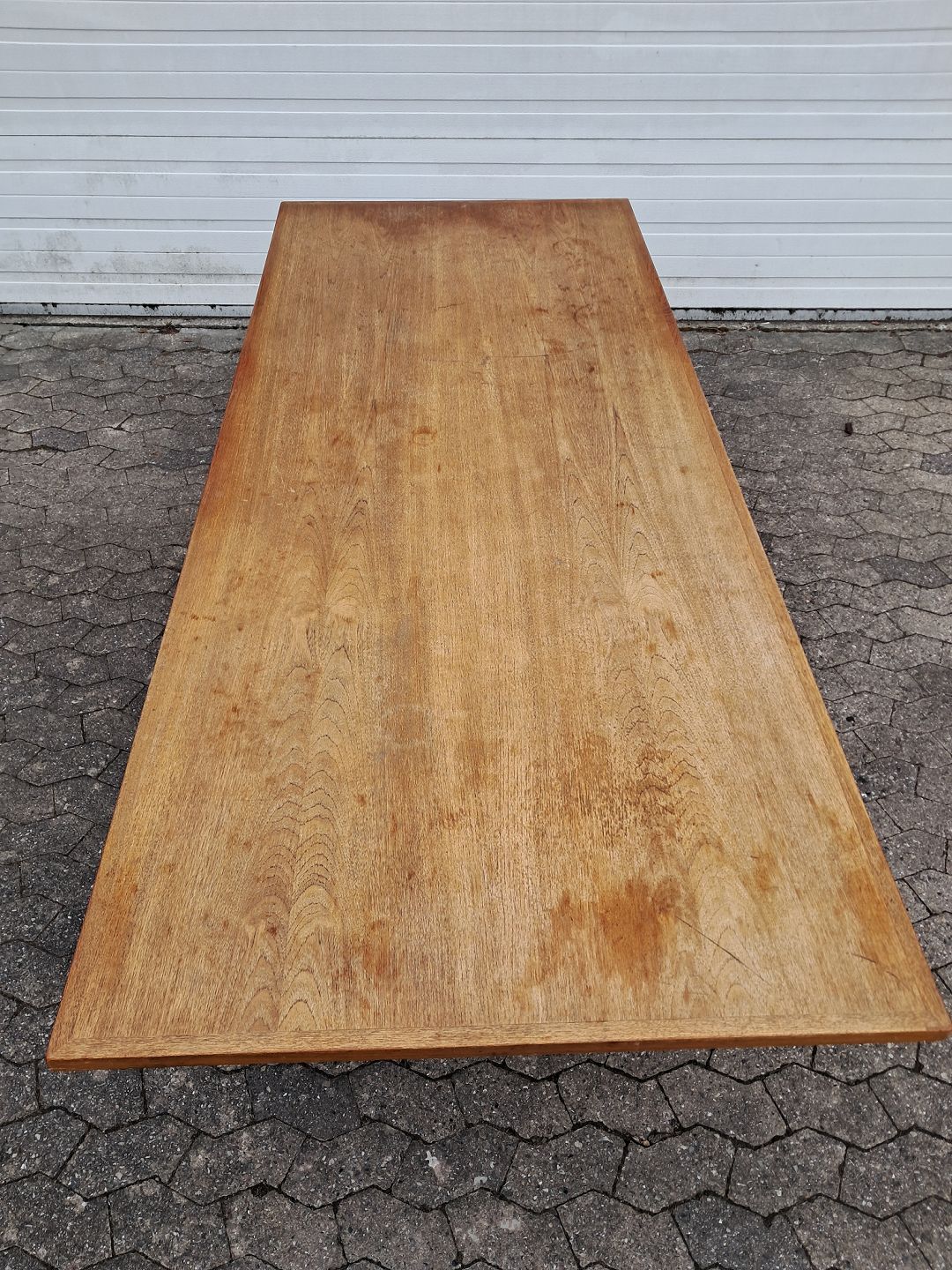 Konferencebord i fineret teaktræ med metal understel, fra 1970erne.