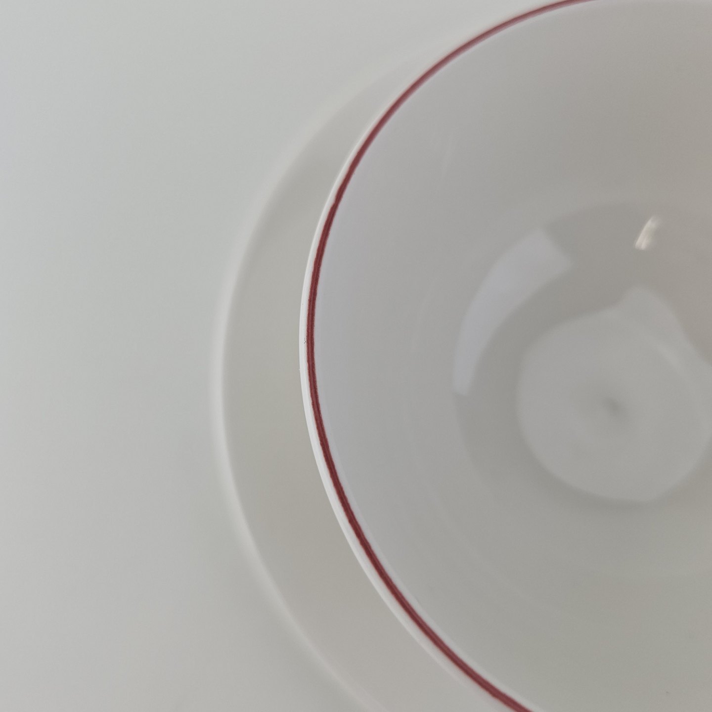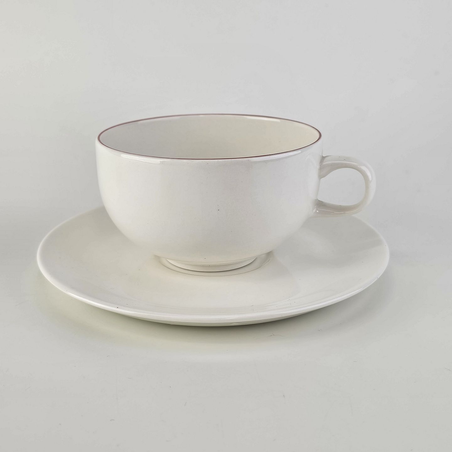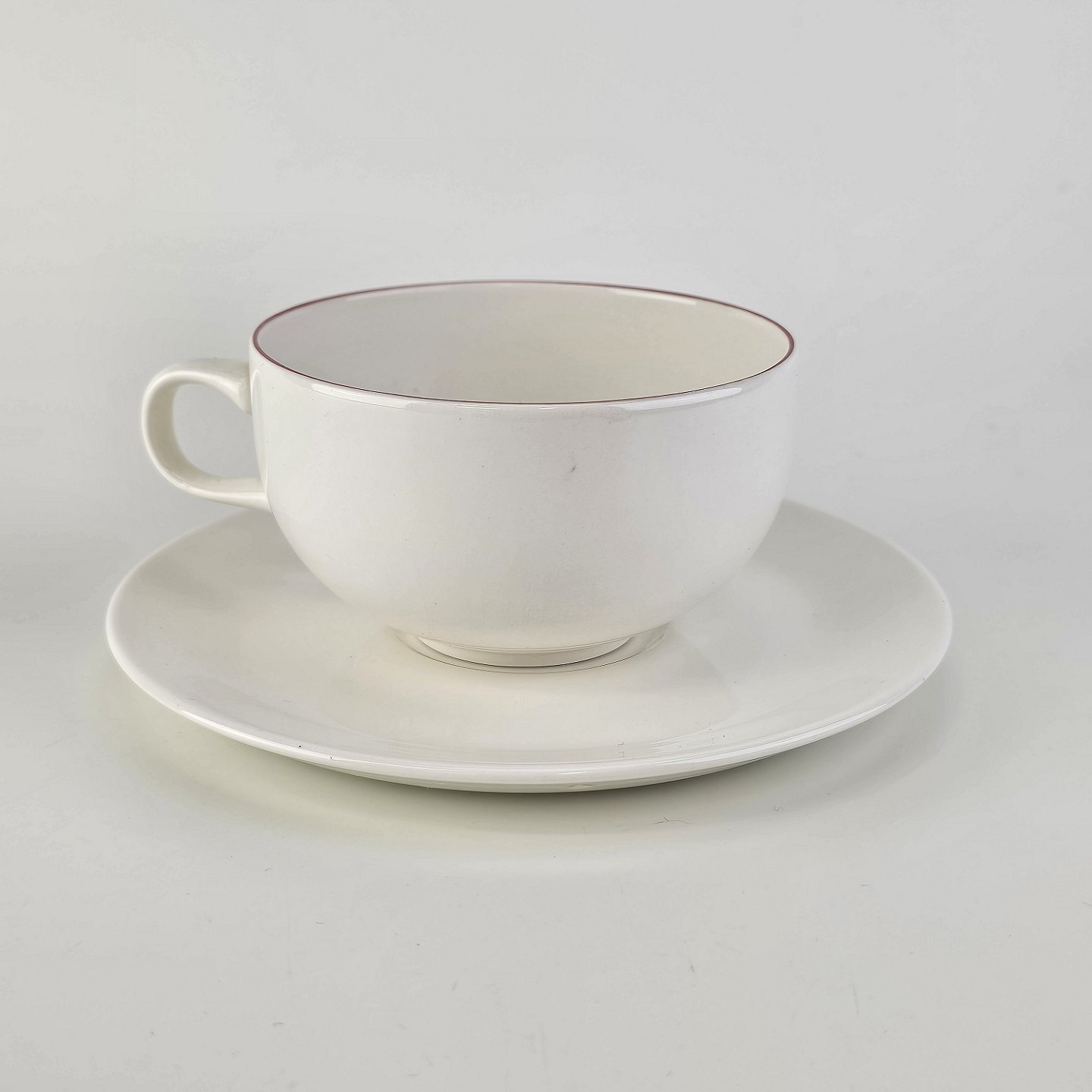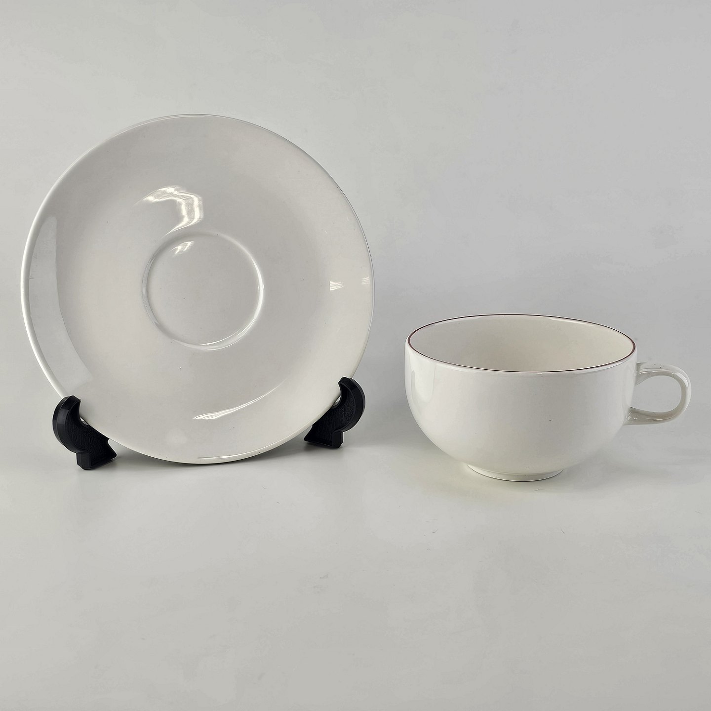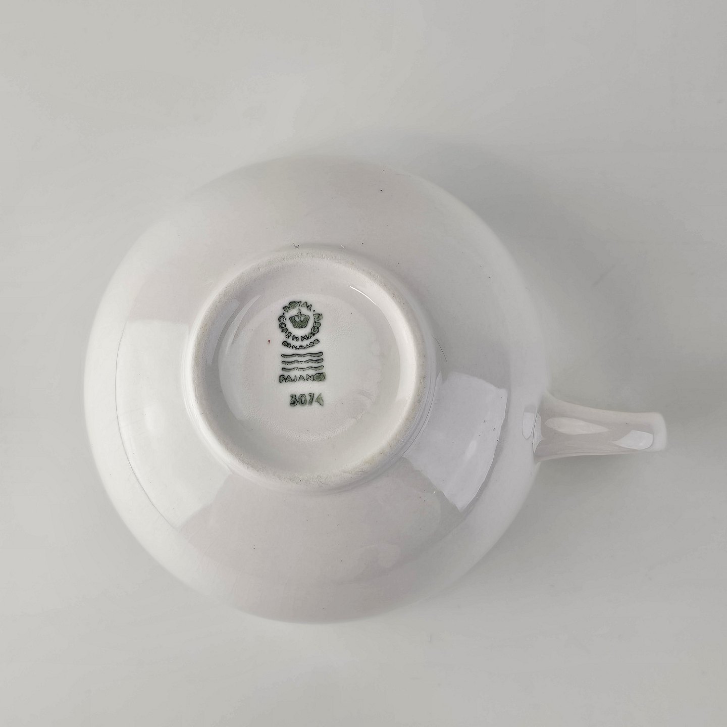 Stor hvid morgenkop med underkop i fajance fra stellet 4 All seasonsnr. 3074 og 5074
