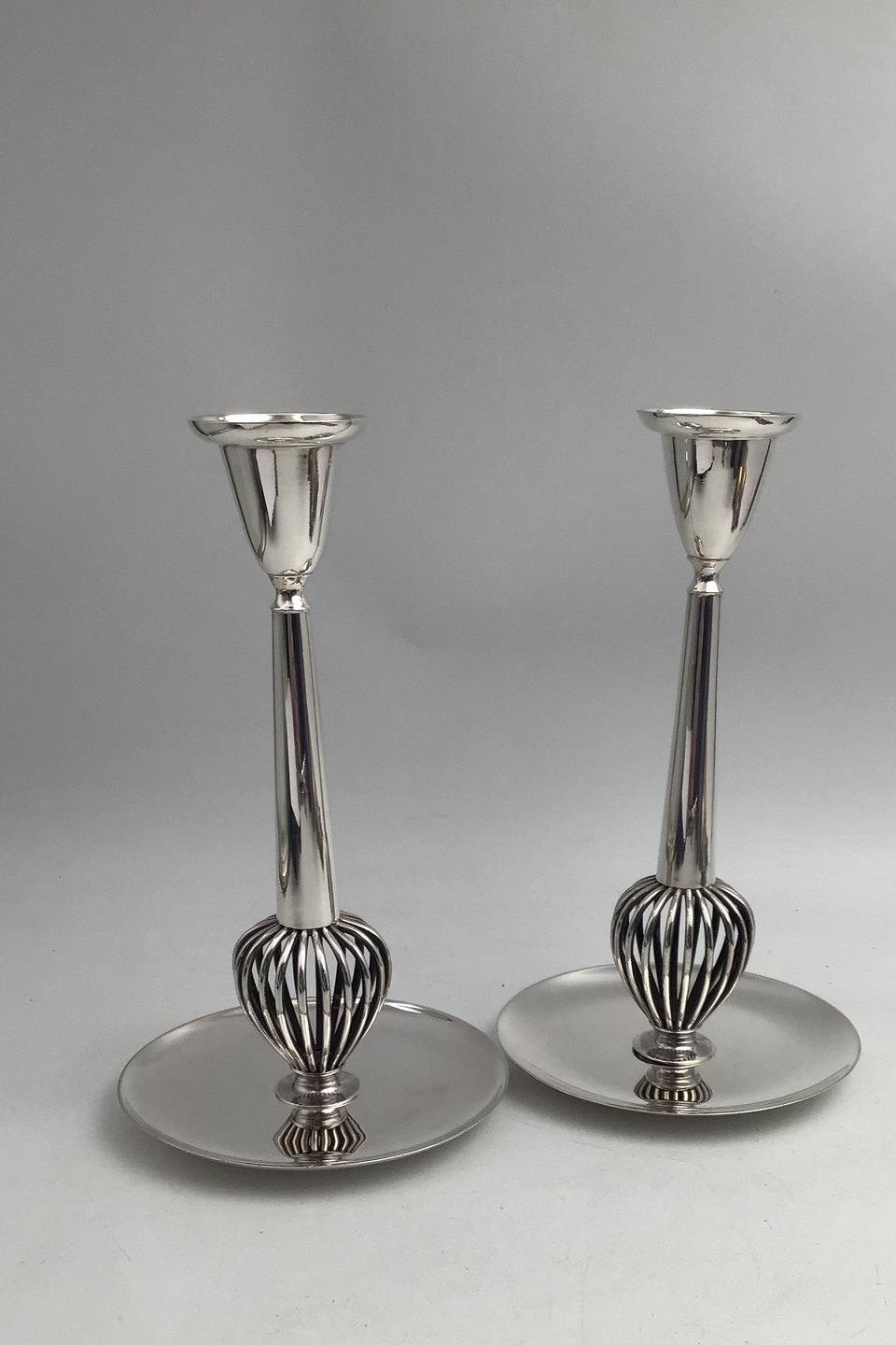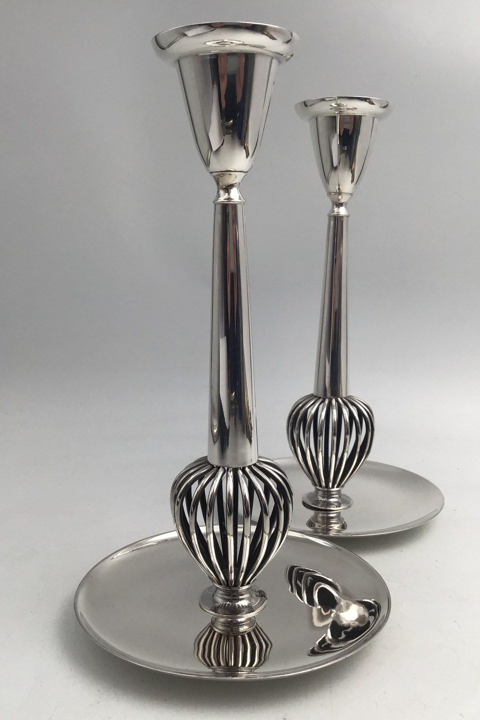 Frantz Hingelberg Sterling Silver CandlesticksMeasures H 19 cm (7.48 inch) Diam 11 cm (4.33 inch) Combined Weight 545 gr (19.22 oz)