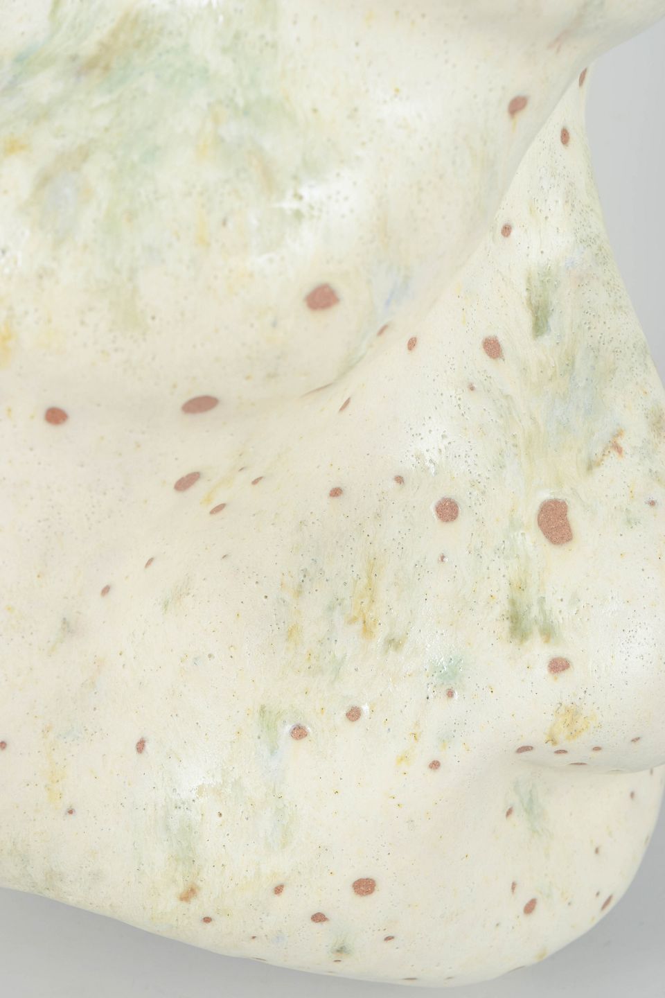 Christina Muff handcrafts her clay sculptures using techniques such as slab building and coiling. Large surfaces of clay are slowly shaped into detailed sculptures with complex, naturalistic forms. It is a time-consuming process, as the sculptures—due to their size—require a long drying period before being fired, often multiple times, to achieve the desired texture and color. During the glazing process, she uses a variety of techniques in combination with natural materials such as sand, chalk, and locally dug clay from Denmark. The goal is to create textures and surfaces that resemble man-made objects reclaimed by nature.