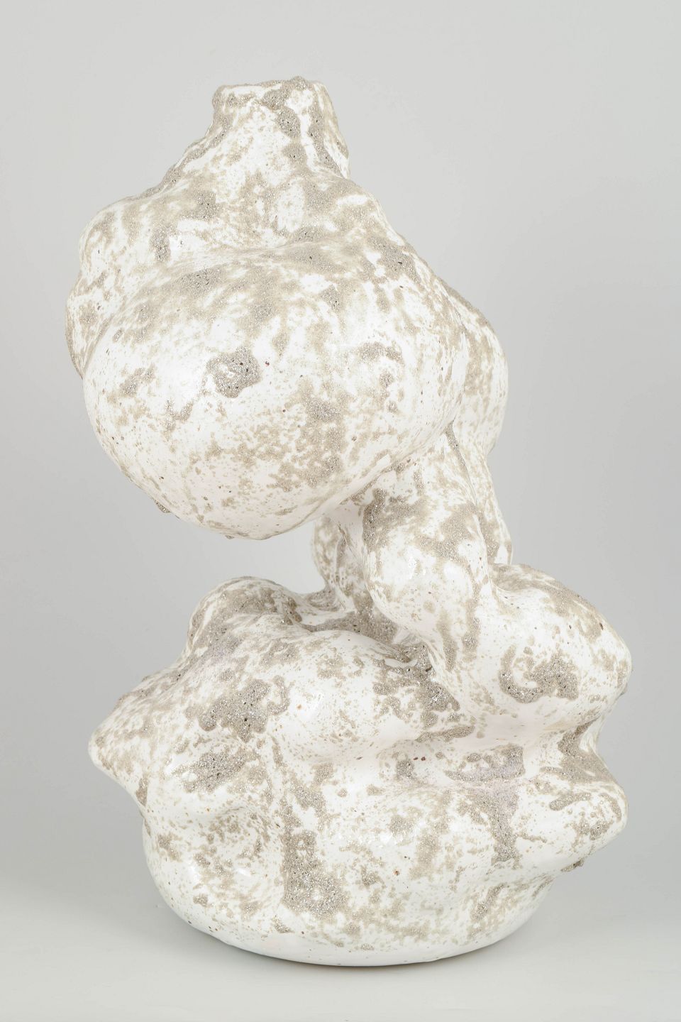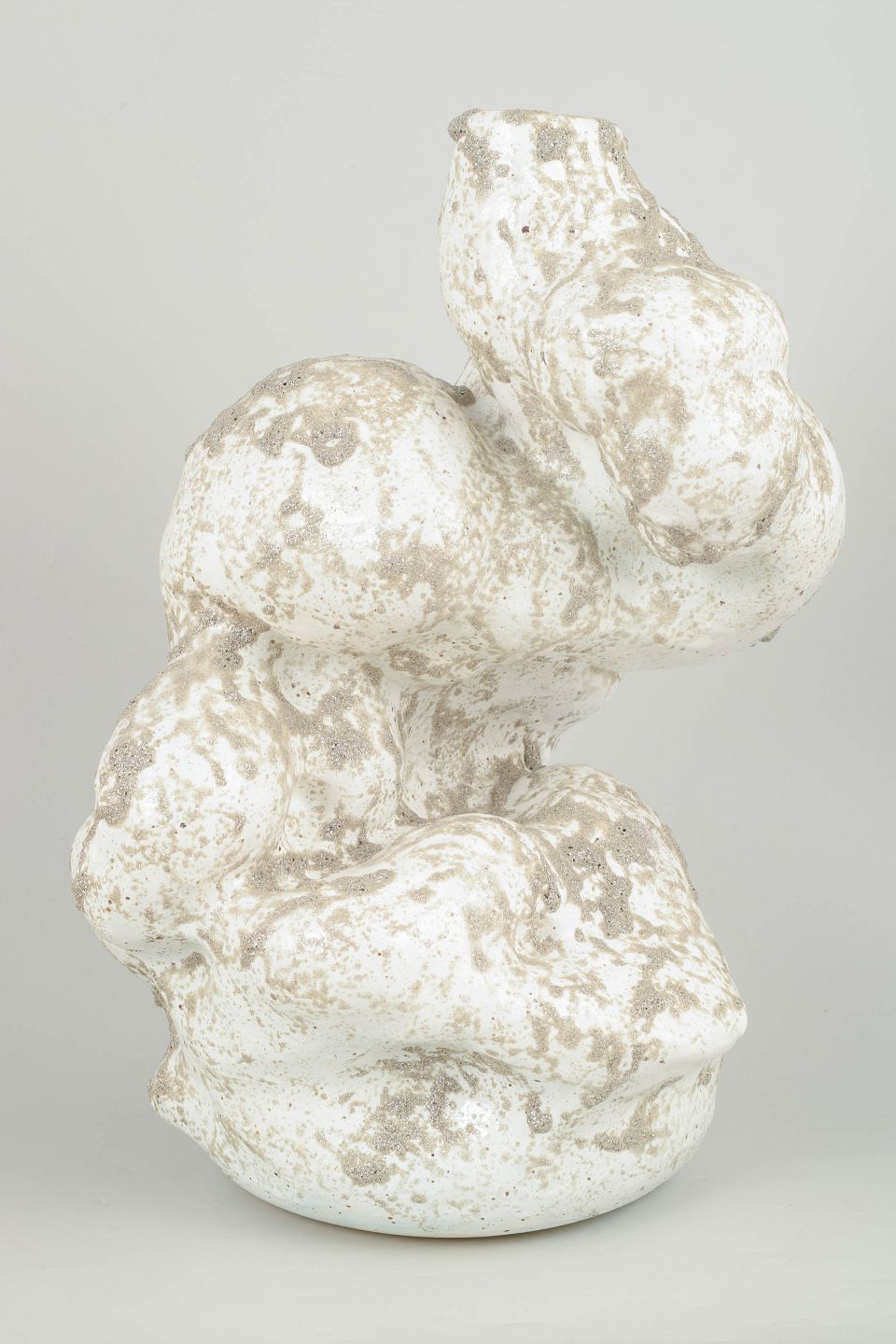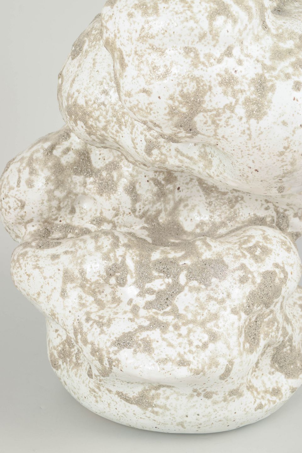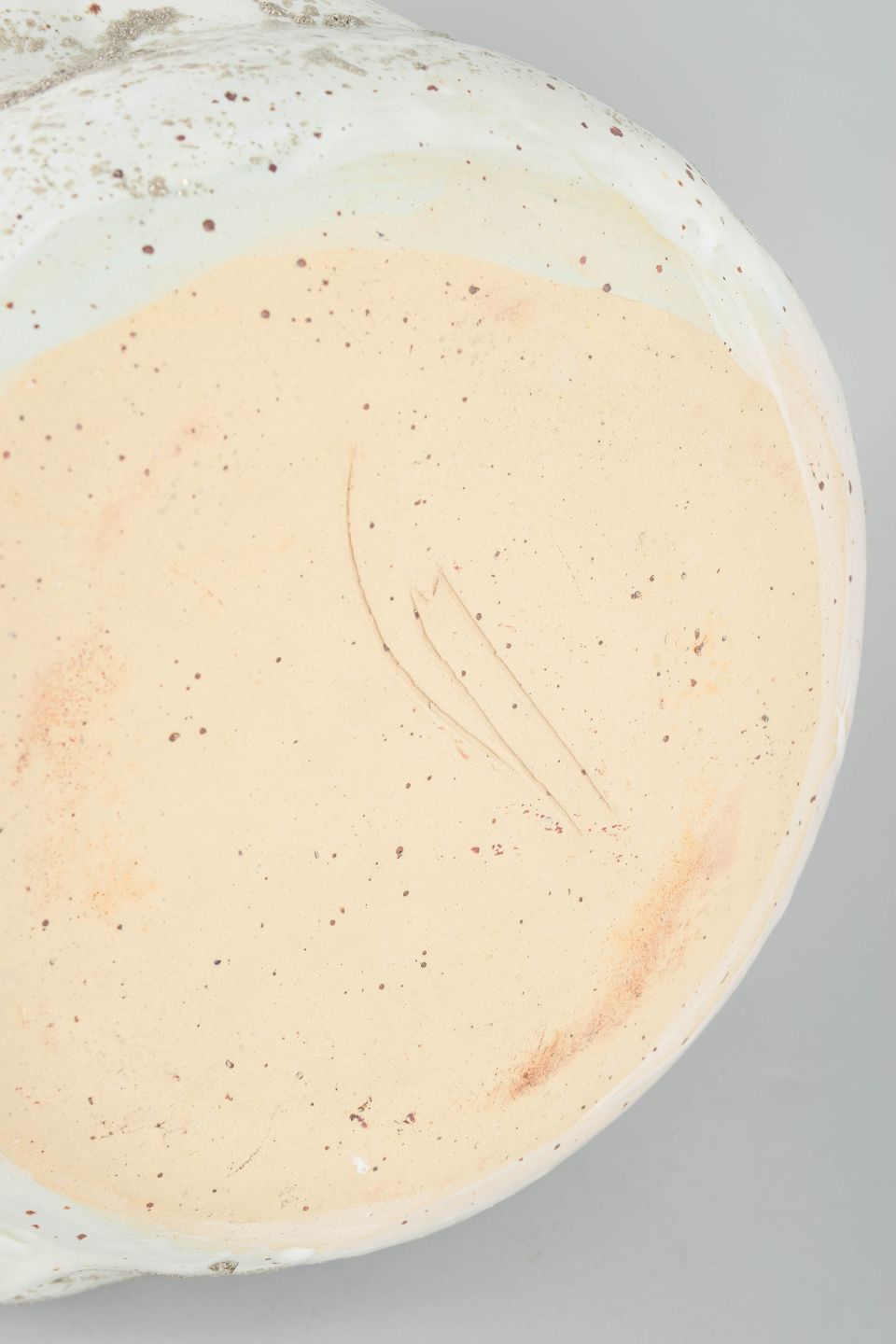 Christina Muff, Danish contemporary ceramicist (b. 1971). Large hand modeled, organic shaped, stoneware vessel. The glaze is glossy white with splashes of grey, matte glitter, lending a resemblence to wet sand. This piece is from Christina Muff's 'Helium' series.Measurements : 46 cm. x 34 cm.