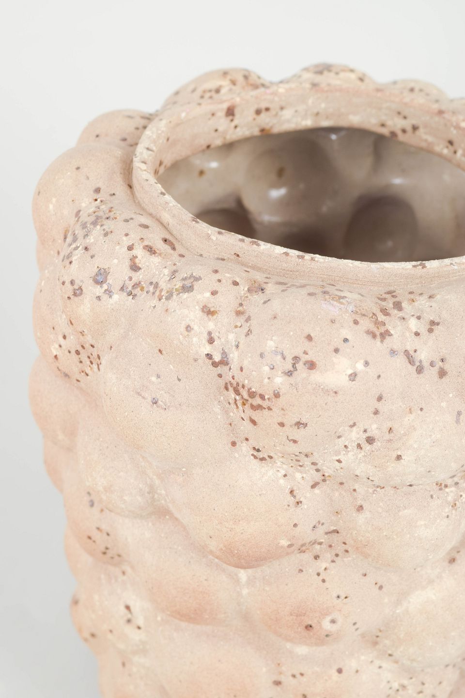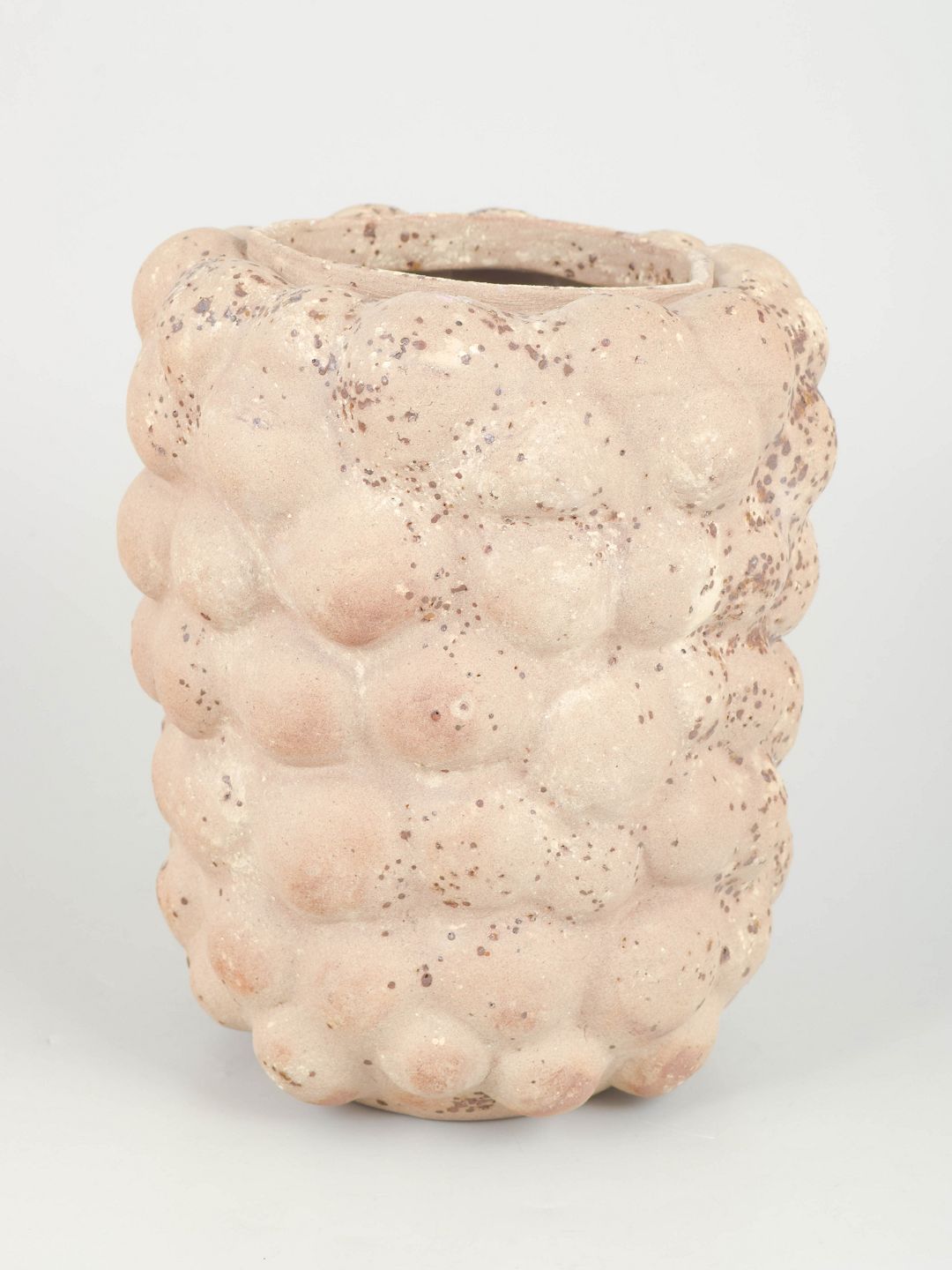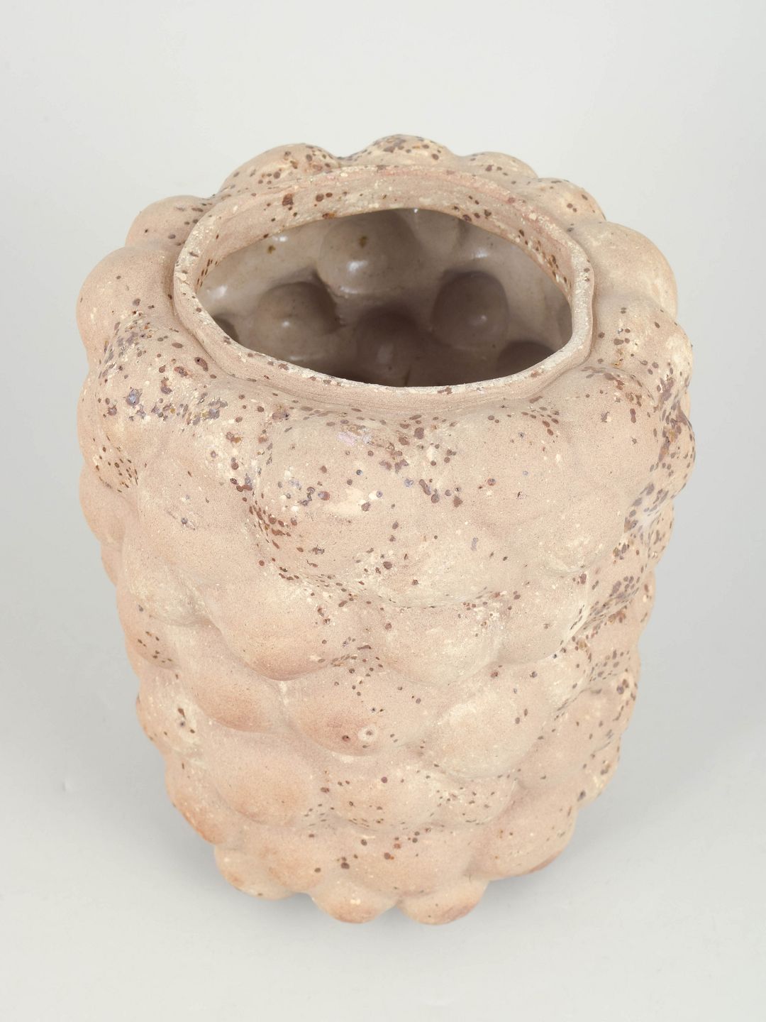 Christina Muff, Danish contemporary ceramicist (b. 1971).One of a kind, hand modeled, bubble shaped, vessel. This work is unglazed as the artist has developed a technique where the clay is washed to enhance its natural coarsness on the surface. Small bits of lava have also been added.