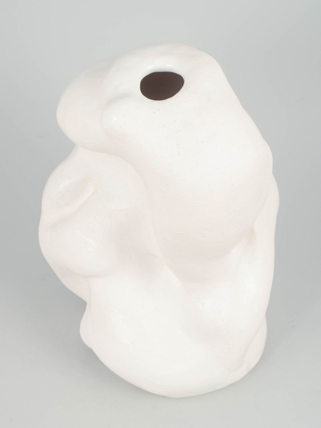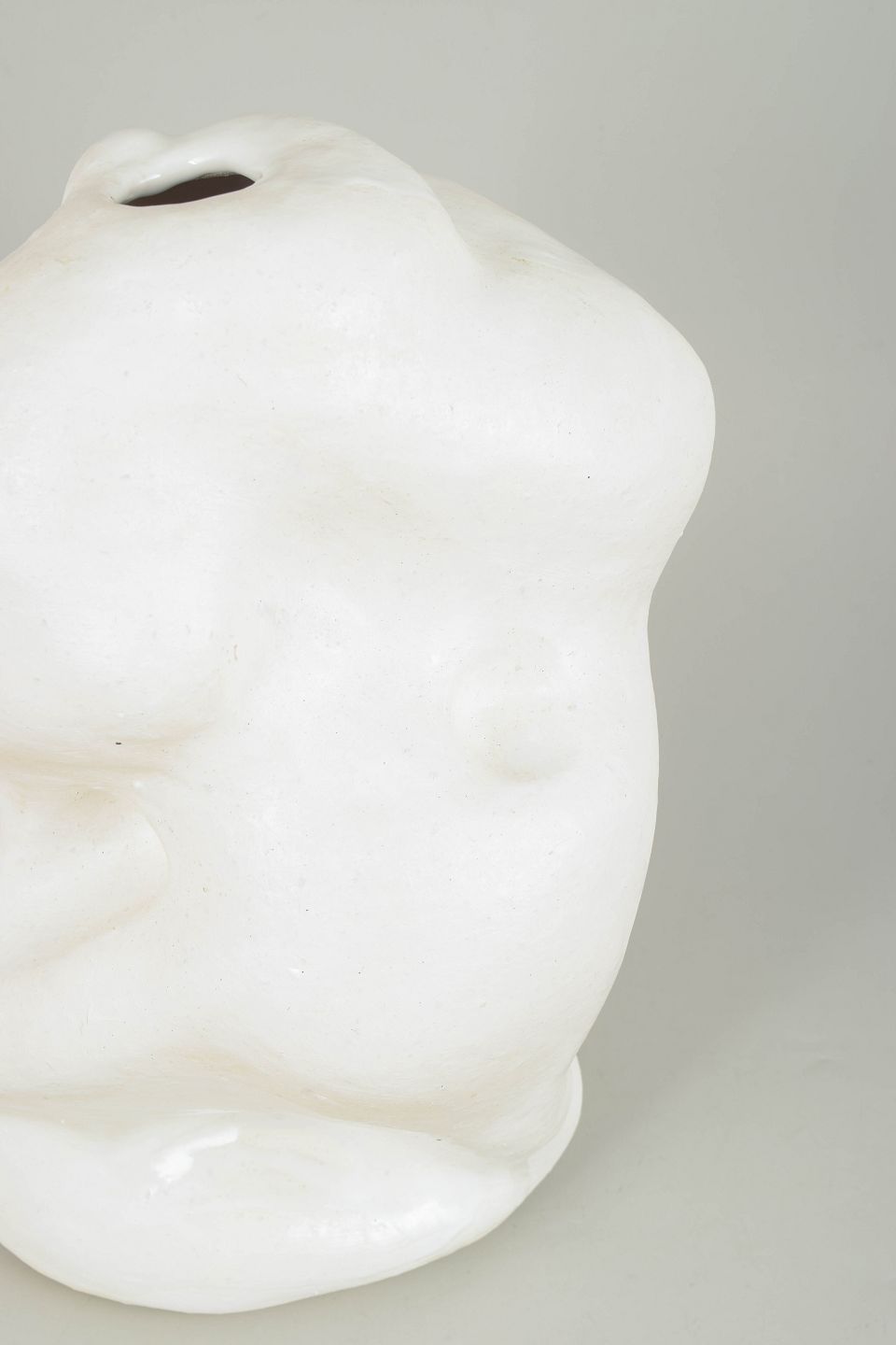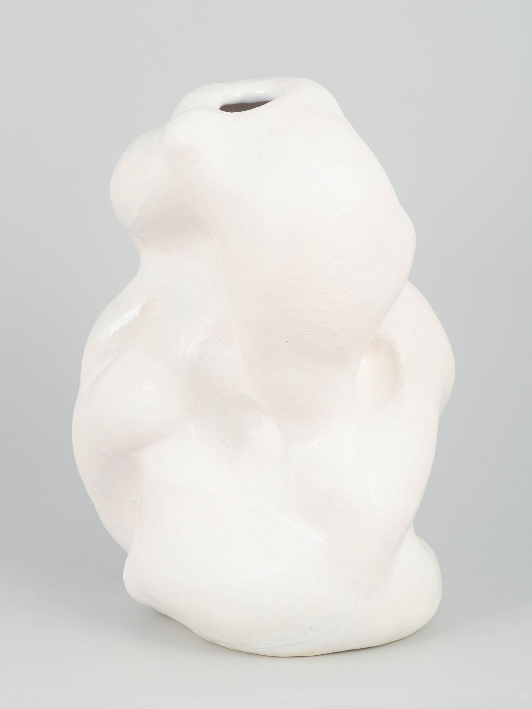 Christina Muff, Danish contemporary ceramicist (b. 1971).Large hand modeled, organic shaped, stoneware vessel. This piece is covered in a thin layer of white, matte porcelain and areas with glossy white glaze. This piece is from Christina Muff's 'Helium' series.