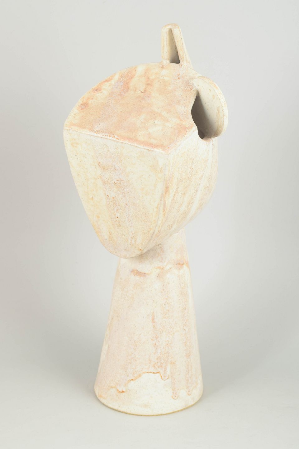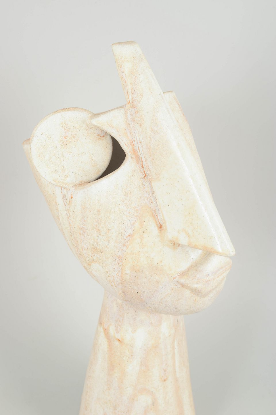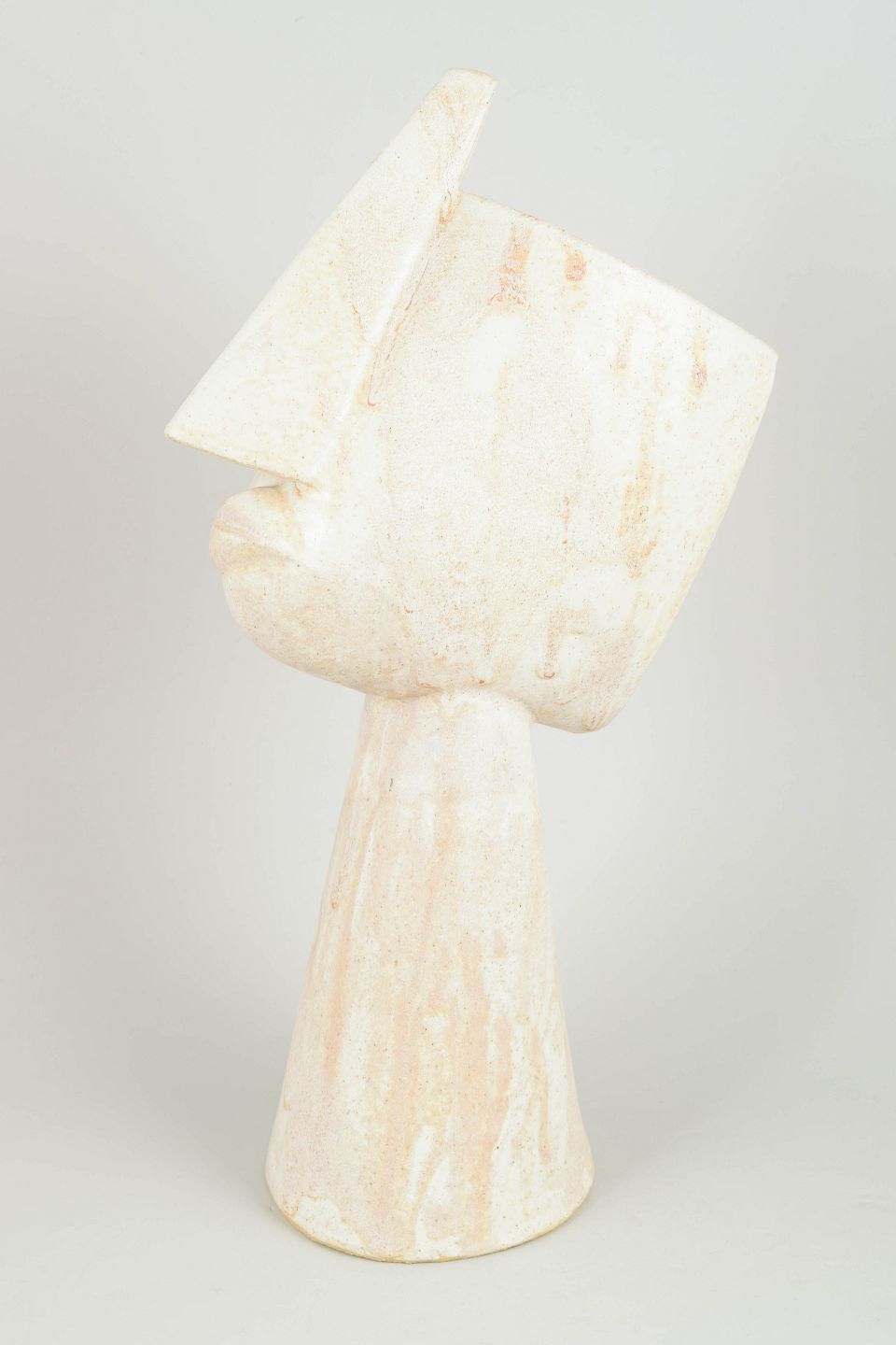 Christina Muff, Danish contemporary ceramicist (b. 1971).Tall hand modeled cubist stoneware face. 'Keep your head held high' from the kilnfolk series.