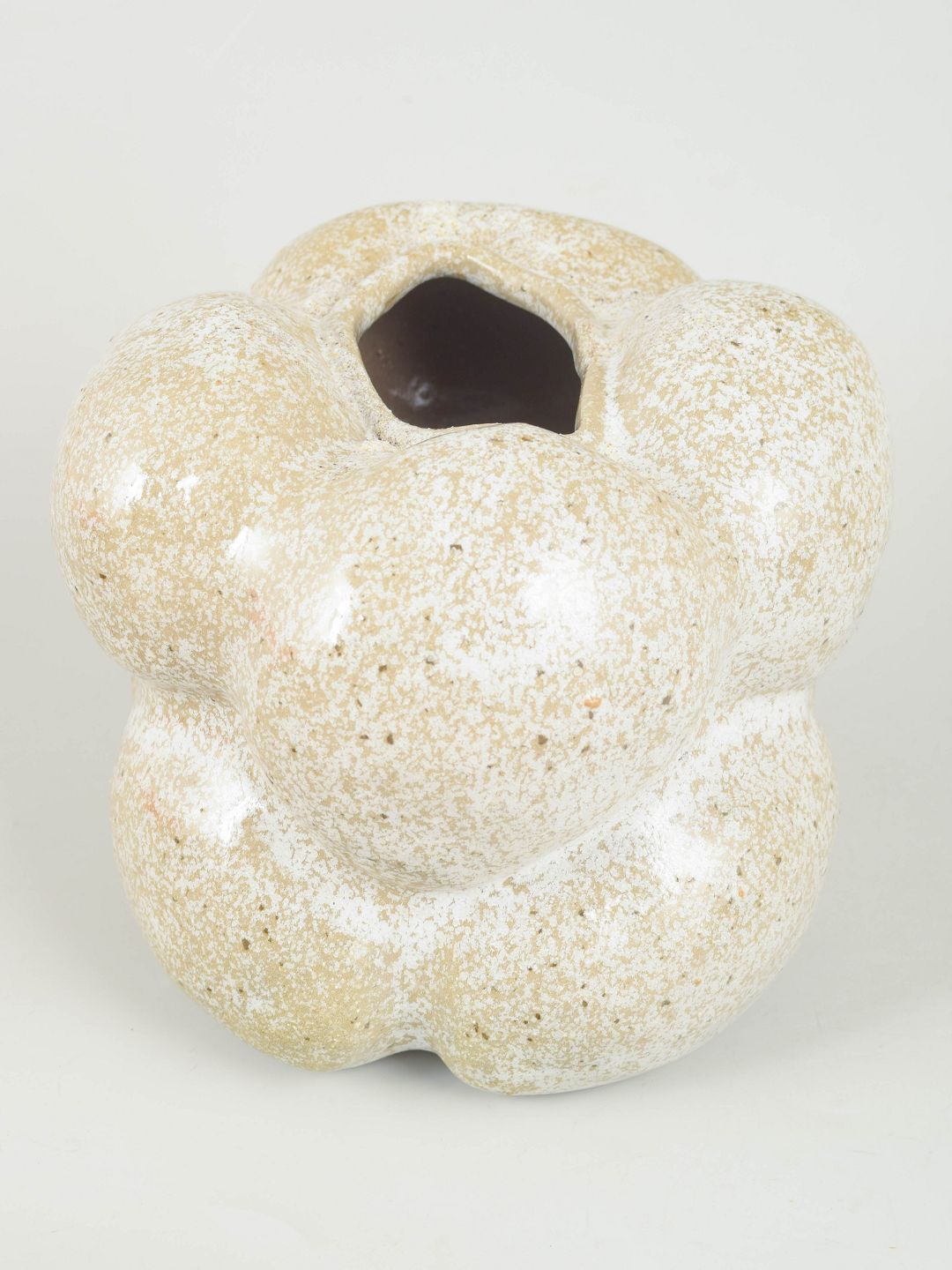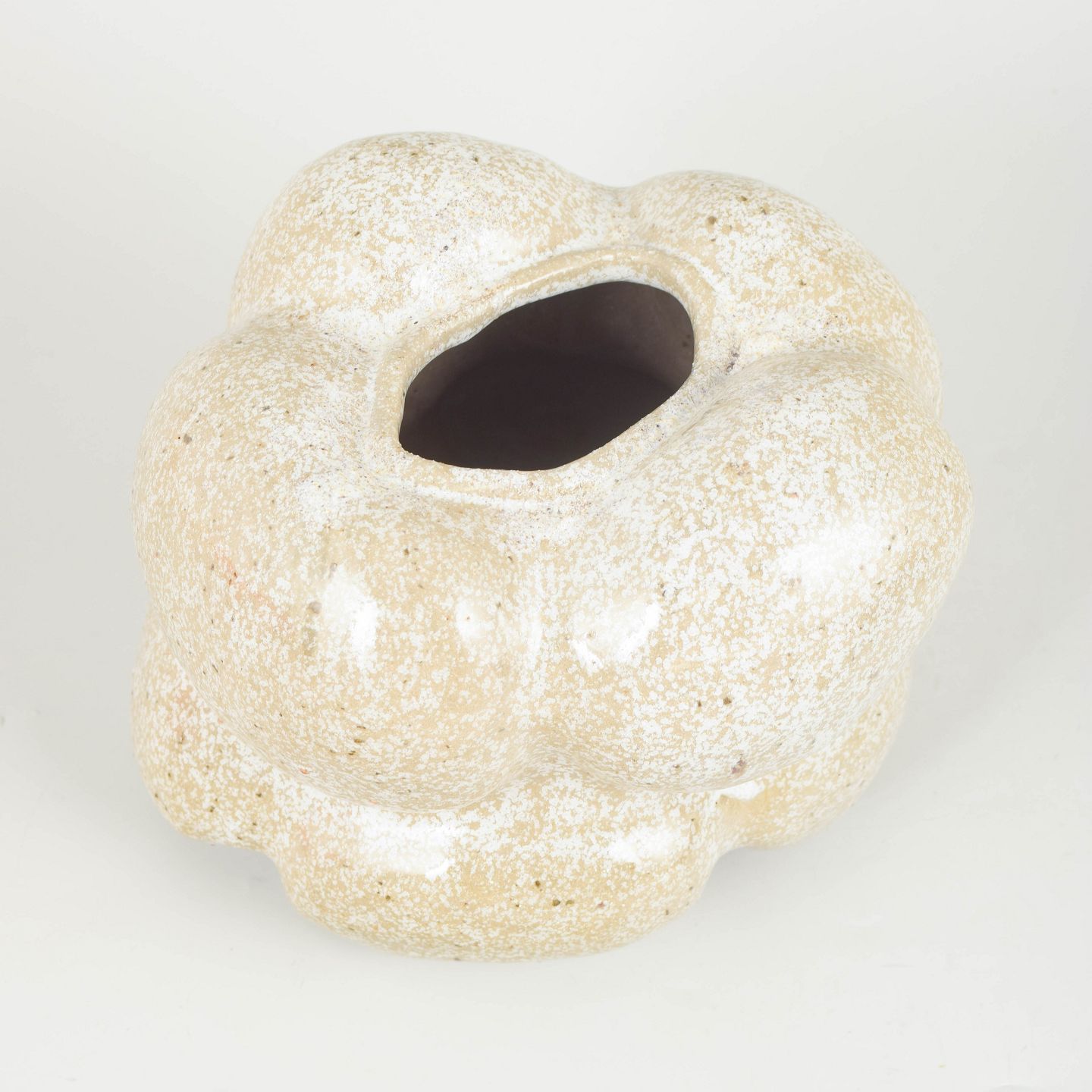 Christina Muff, Danish contemporary ceramicist (b. 1971).One of a kind hand modeled, organic shaped, vessel with snowflake glaze. Snowflake glaze is a clear glaze with tiny specs of white crystals.