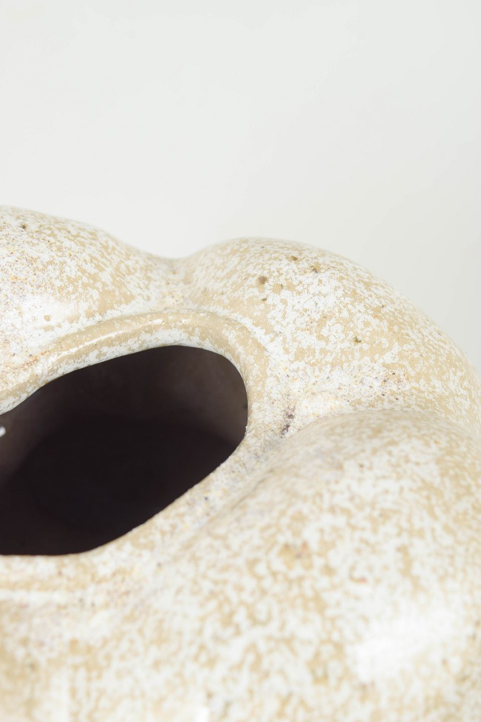 Christina Muff handcrafts her clay sculptures using techniques such as slab building and coiling. Large surfaces of clay are slowly shaped into detailed sculptures with complex, naturalistic forms. It is a time-consuming process, as the sculptures—due to their size—require a long drying period before being fired, often multiple times, to achieve the desired texture and color. During the glazing process, she uses a variety of techniques in combination with natural materials such as sand, chalk, and locally dug clay from Denmark. The goal is to create textures and surfaces that resemble man-made objects reclaimed by nature.