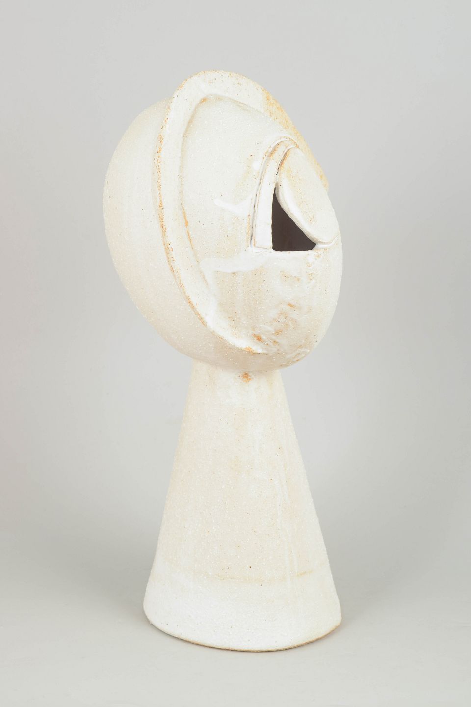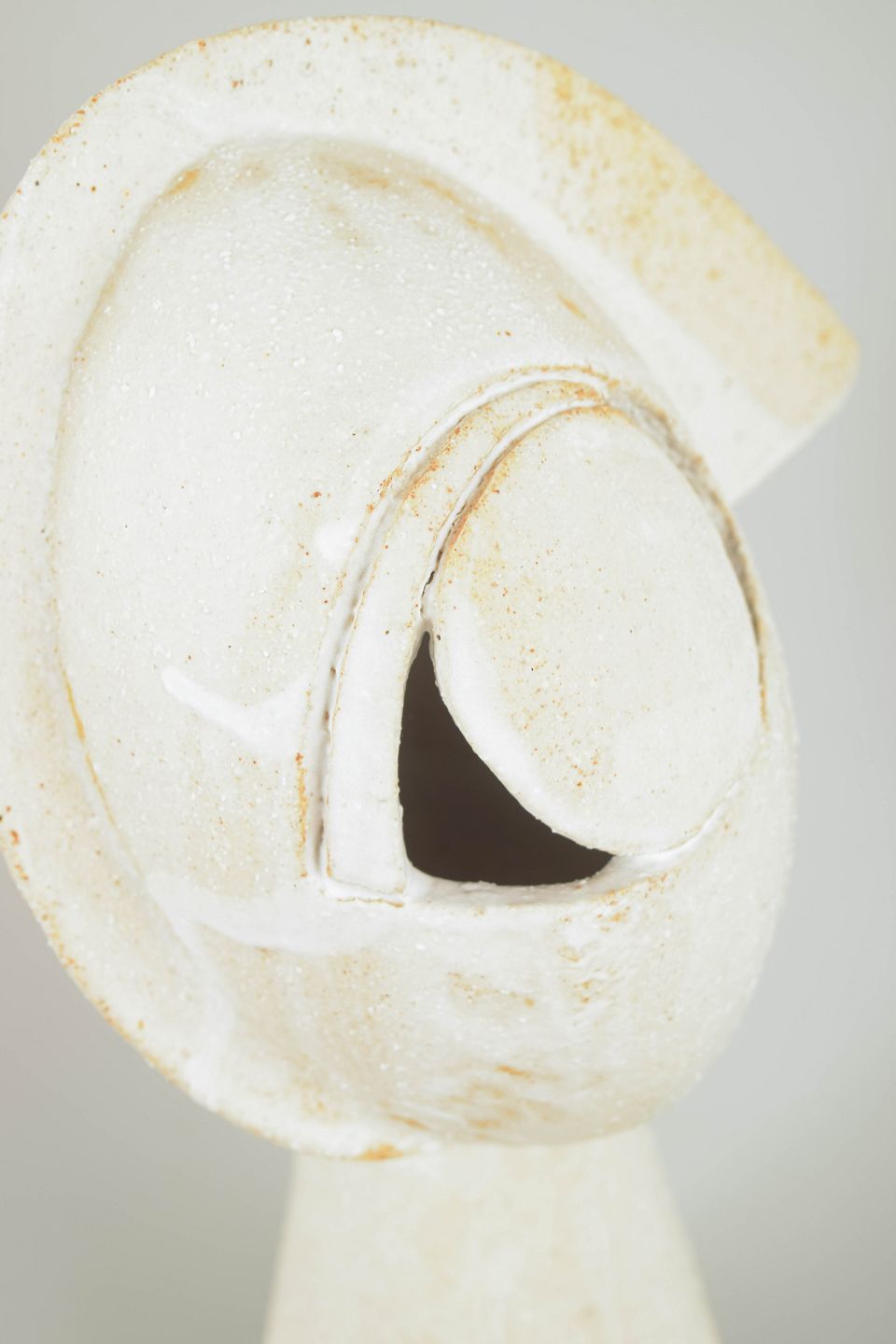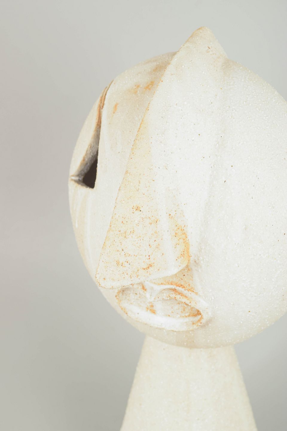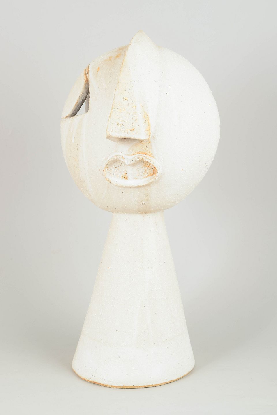 Tall hand modeled cubist stoneware face.