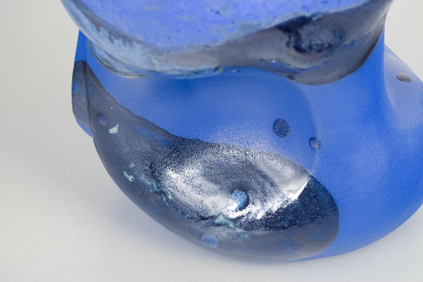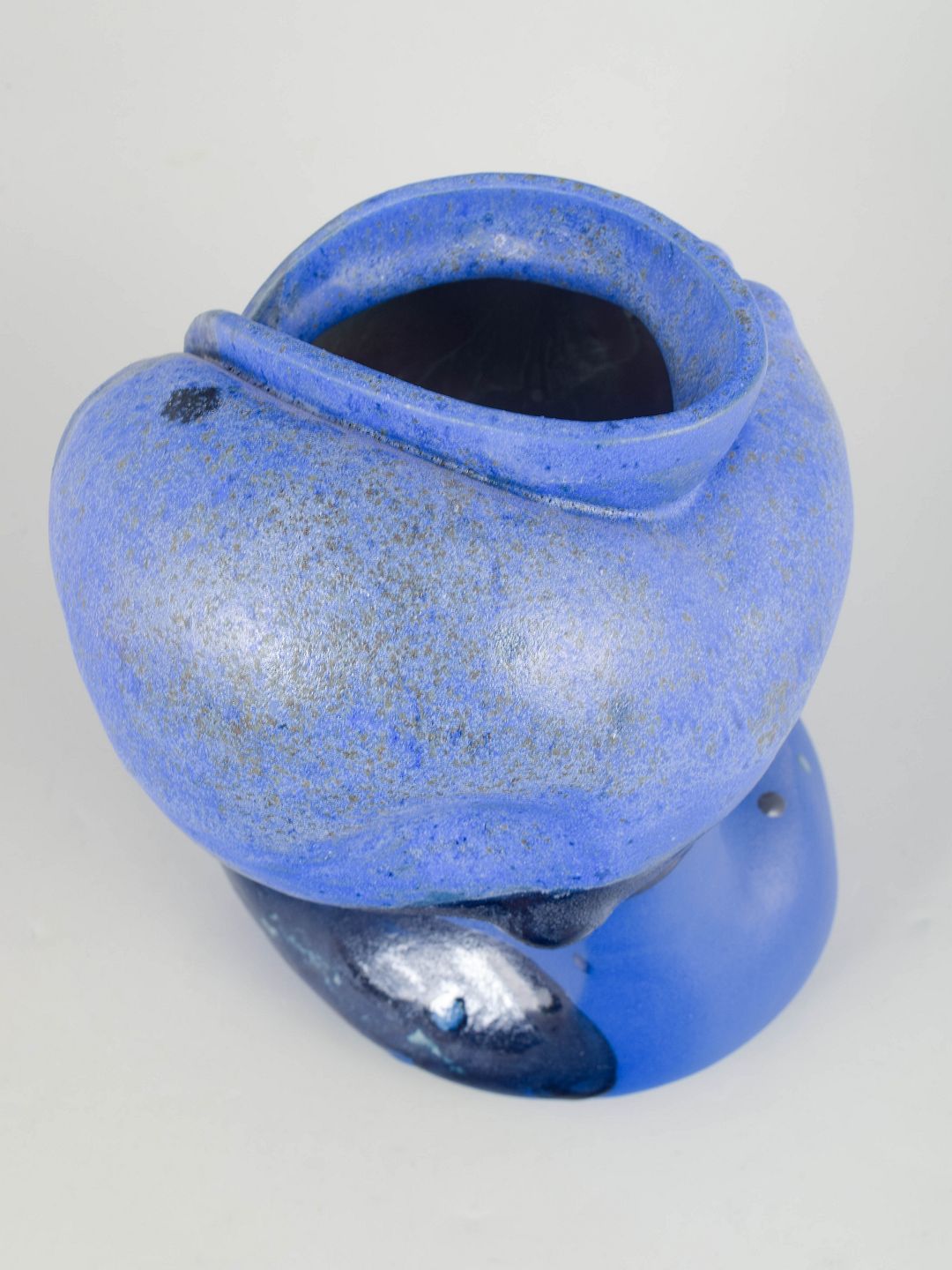 Christina Muff, Danish contemporary ceramicist (b. 1971).Large hand modeled, organic shaped, vessel. The vessel is covered in a variety of royal blue glazes, matte and shiny.