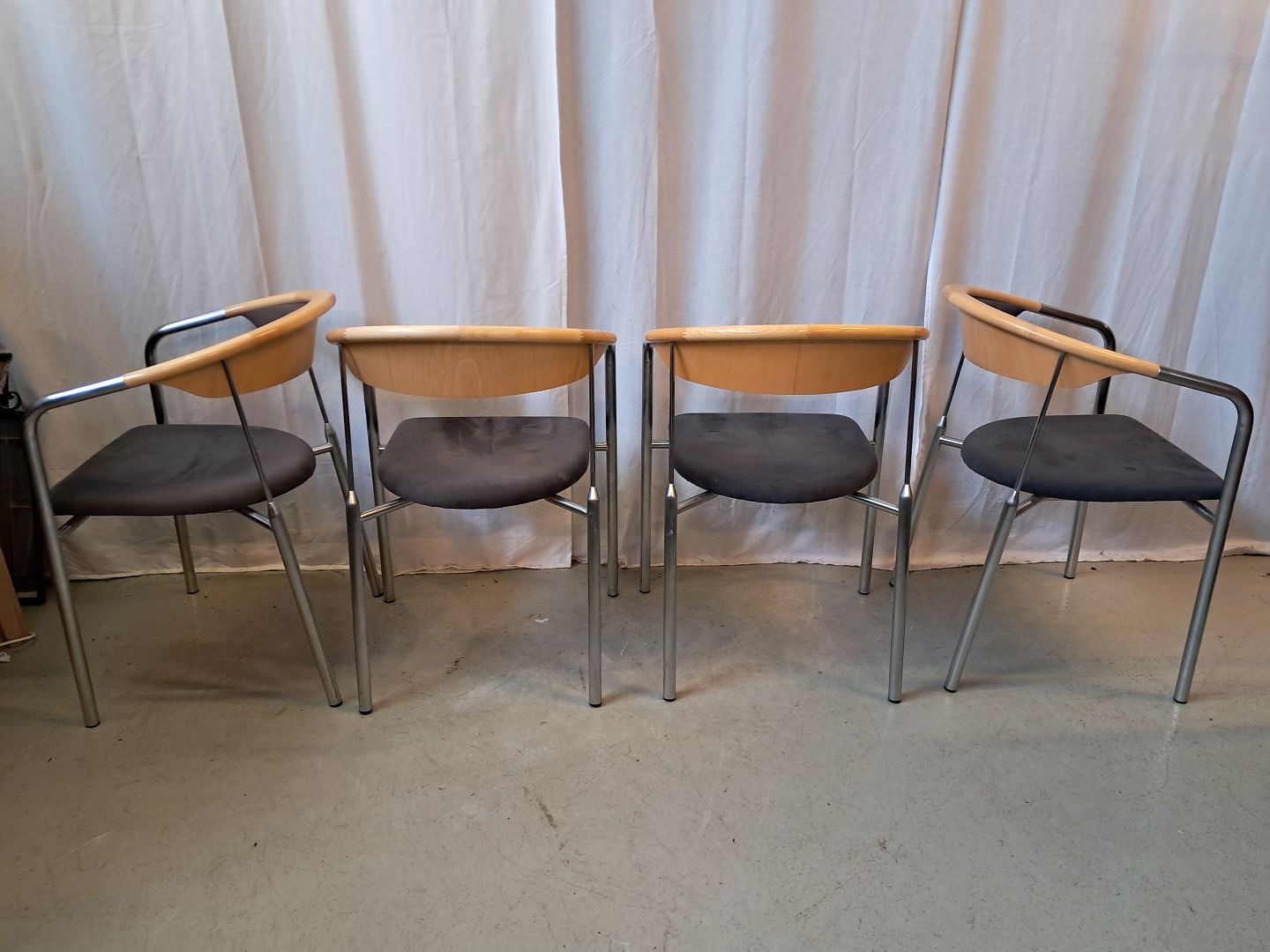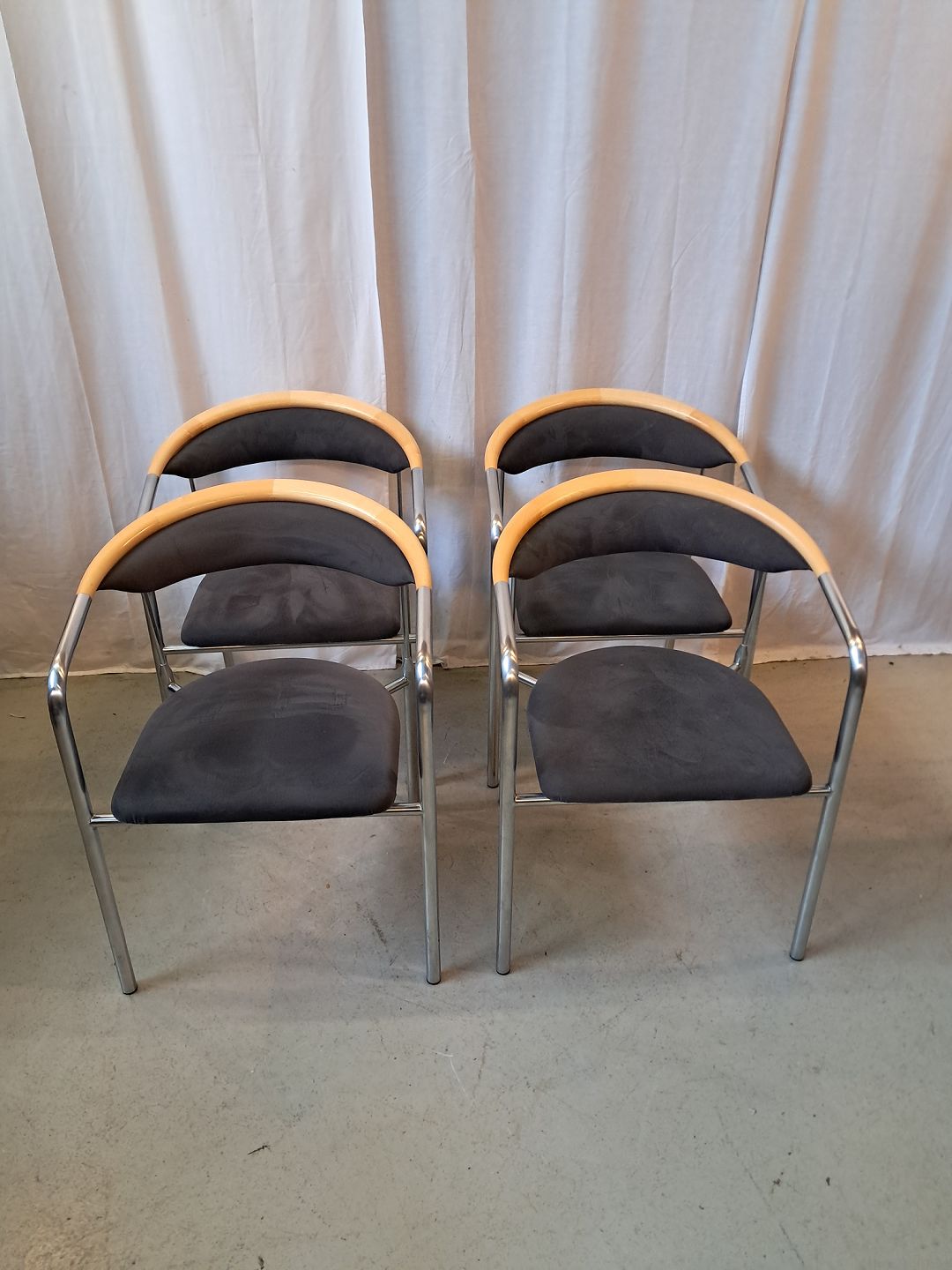 4 Chairman stole af Henrik Tengler i metal med alcantarabetræk, fra 2010erne.De har brugsspor.