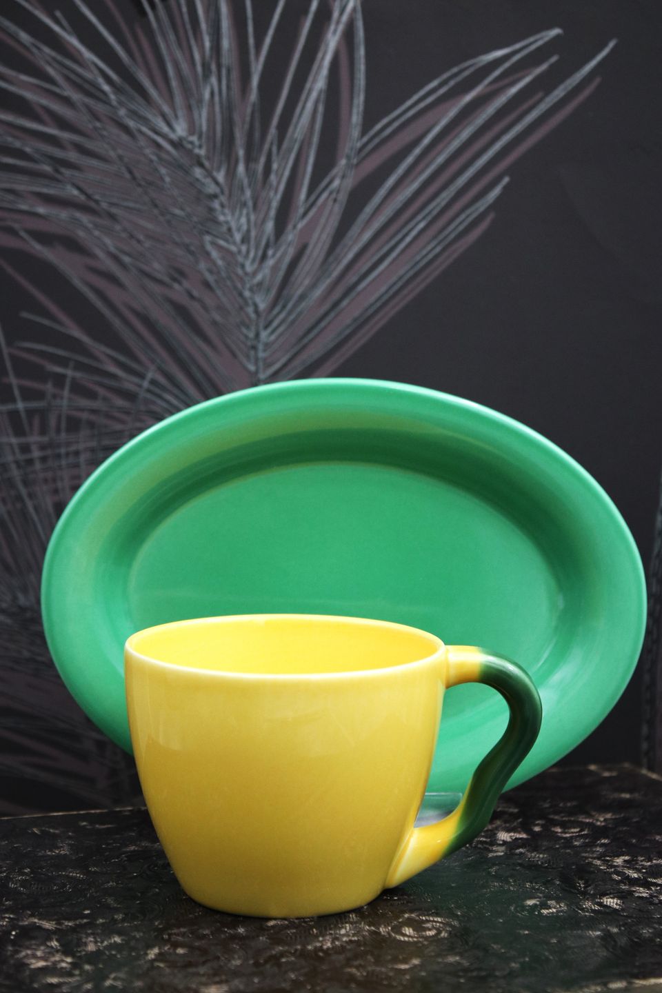 and saucer in green glaze.