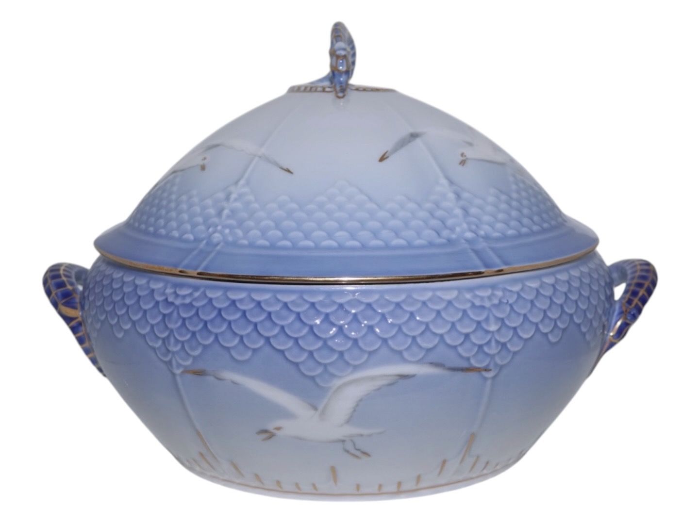 Bing & Grondahl, Seagull with gold edge, lidded bowl (small tureen).The factory mark shows, that this was produced between 1958 and 1962.