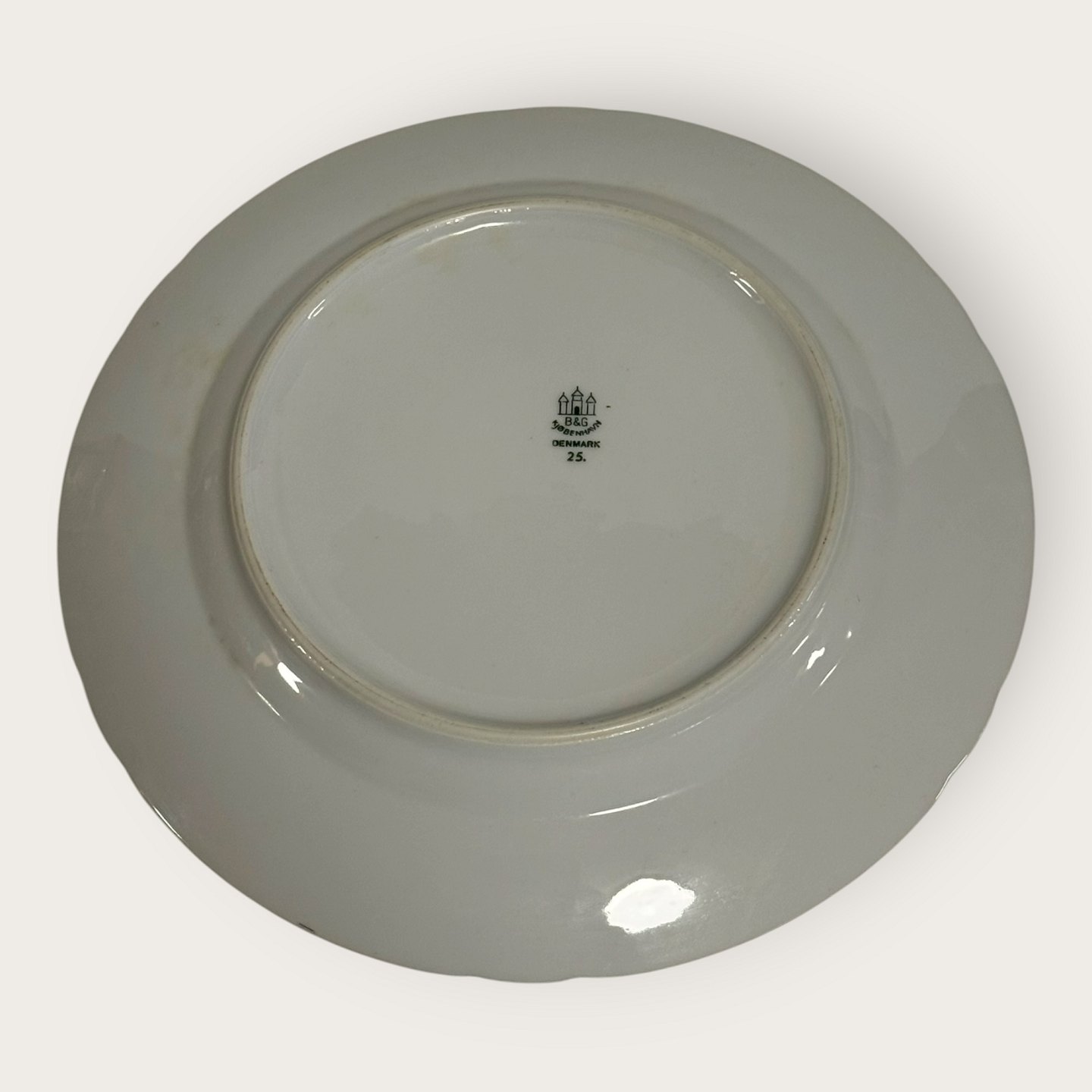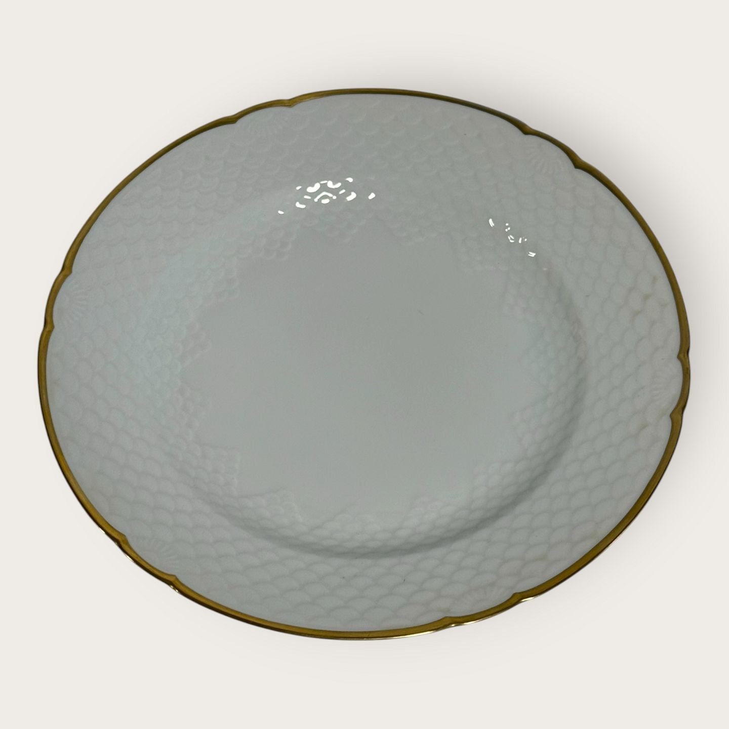 Bing & Grondahl, Aakjær, White porcelain with gold rim, Dinner plate # 25, 24.5cm in diameter, 1st grade *Good condition*