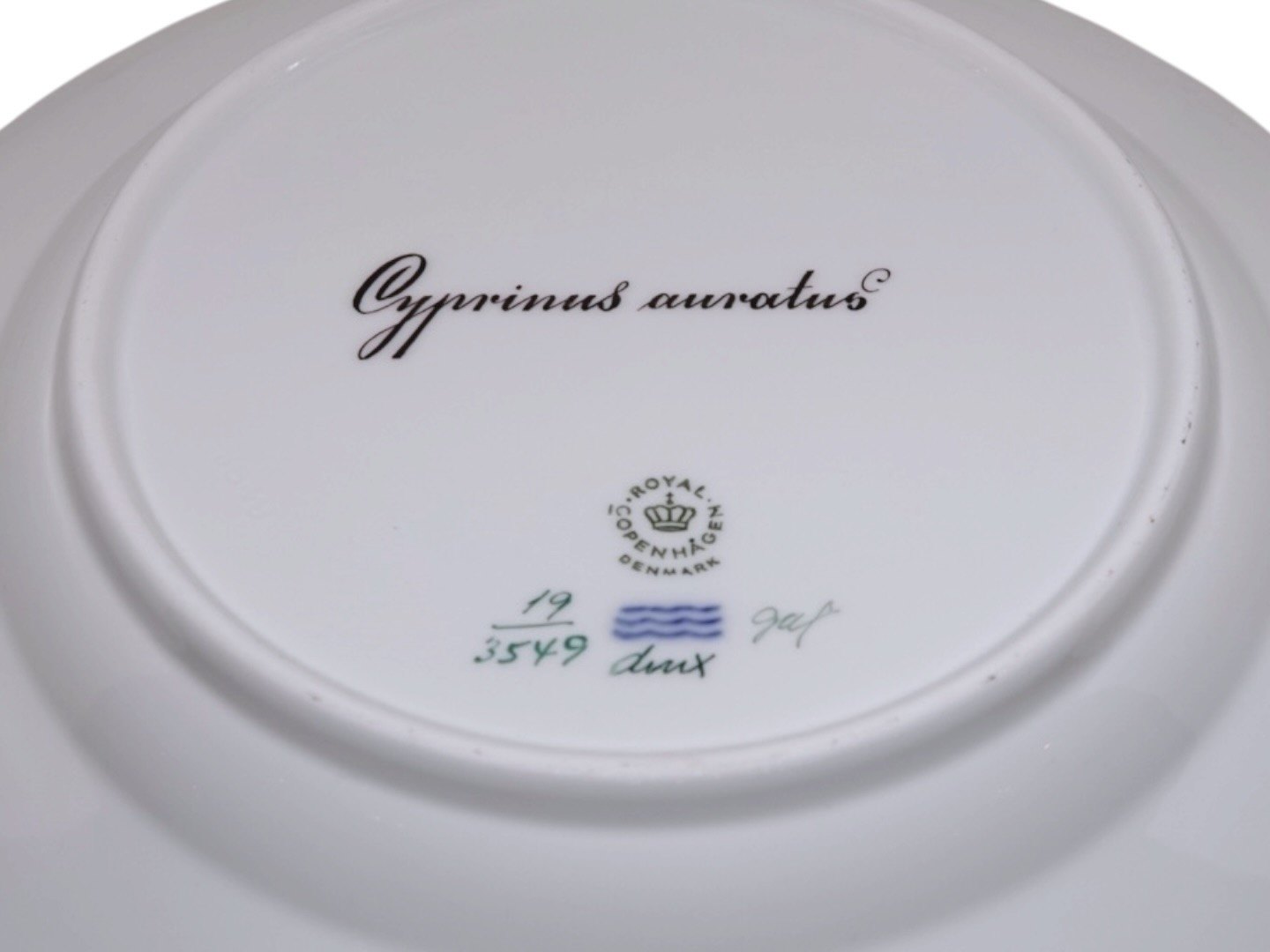 Royal Copenhagen Flora Danica, dinner plate decorated with a fish.Decoration number 20/3549.