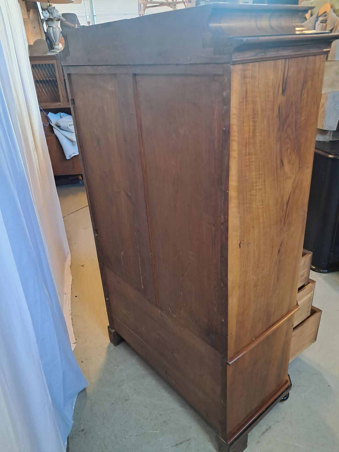 Skab i fineret mahogni og nøderod, fra 1900erne.Det har brugsspor og en defekt liste.(se foto)