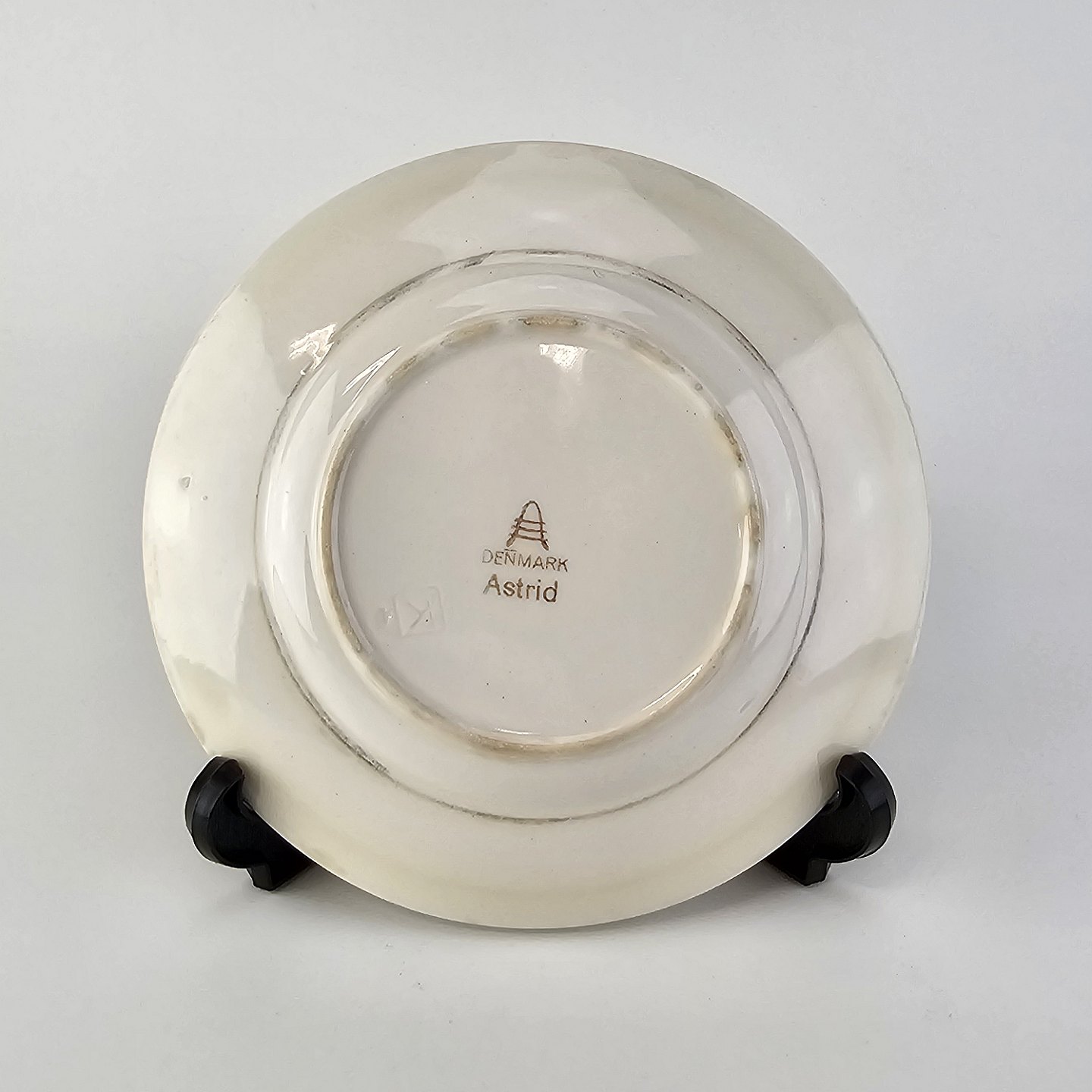 Flad kagetallerken i fajance fra stellet Astrid fremstillet i perioden 1937-1958Formgiver Nils Thorsson