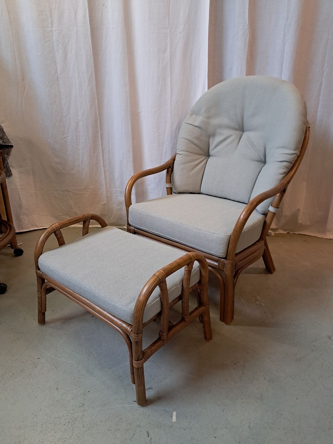 Sika design, lænestol med fodskammel i bambus, fra 2000erne.De har små brugsspor.