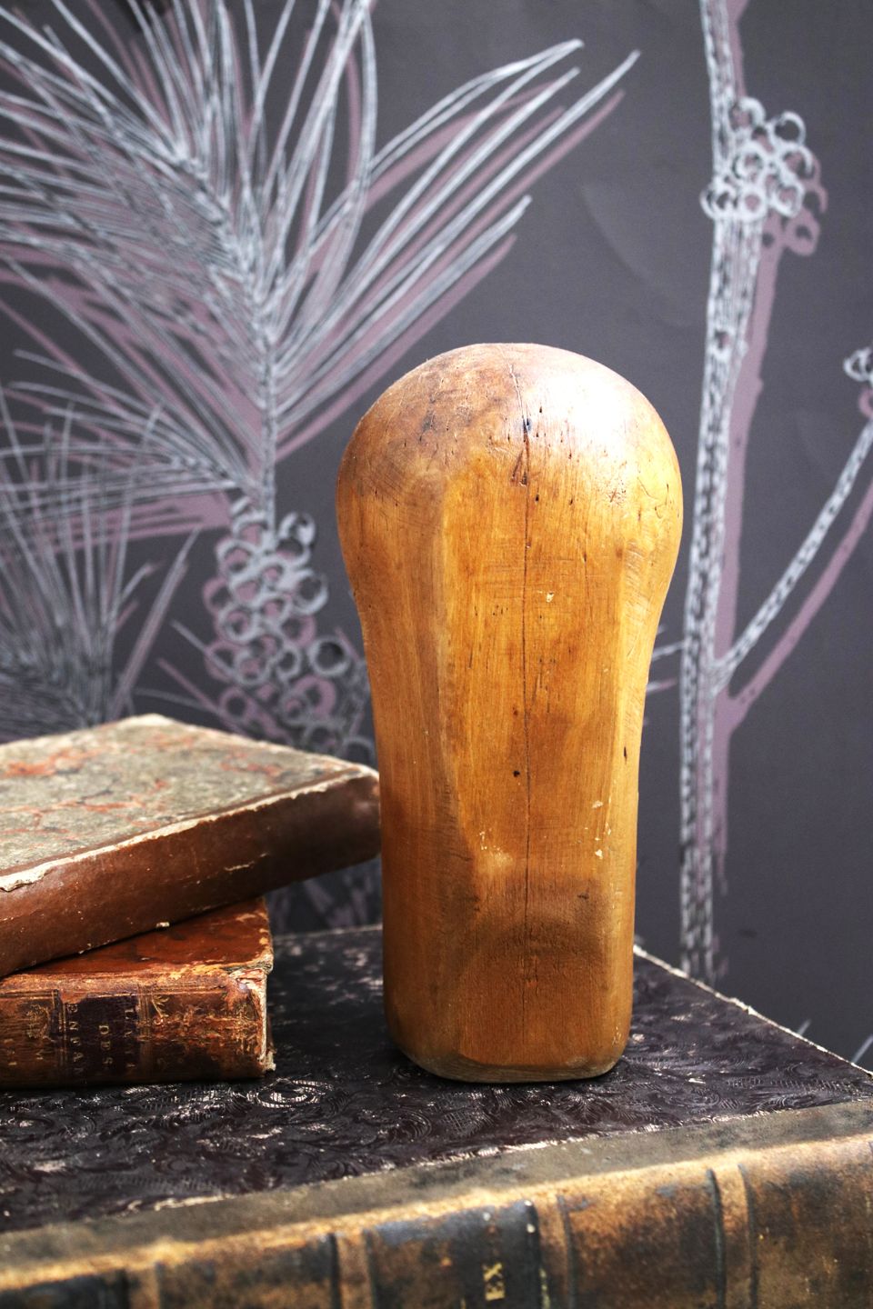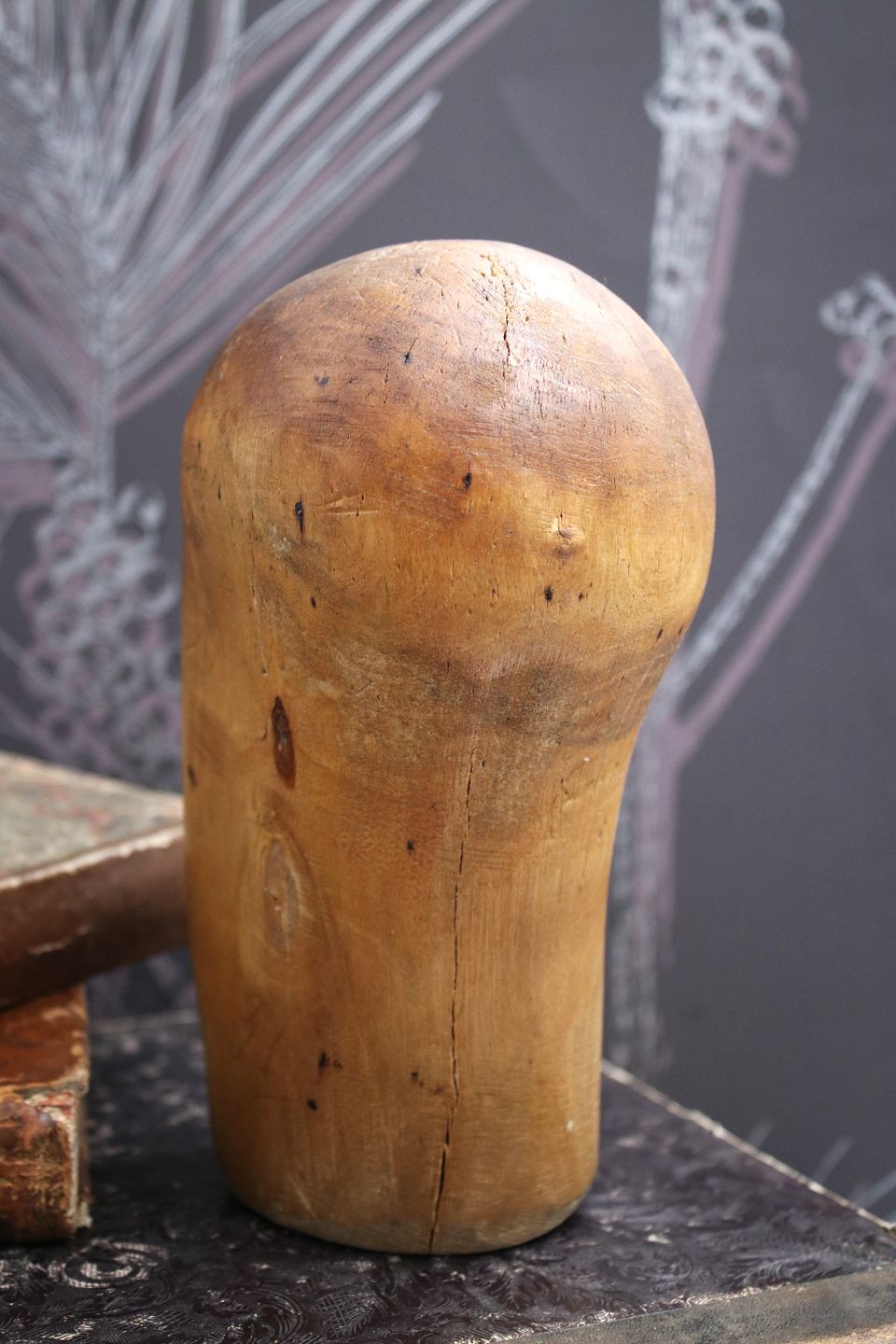 Decorative, antique mini hat head in carved wood with a really nice patina. Height: 17.5cm.Item number: Hatte hoved i træ