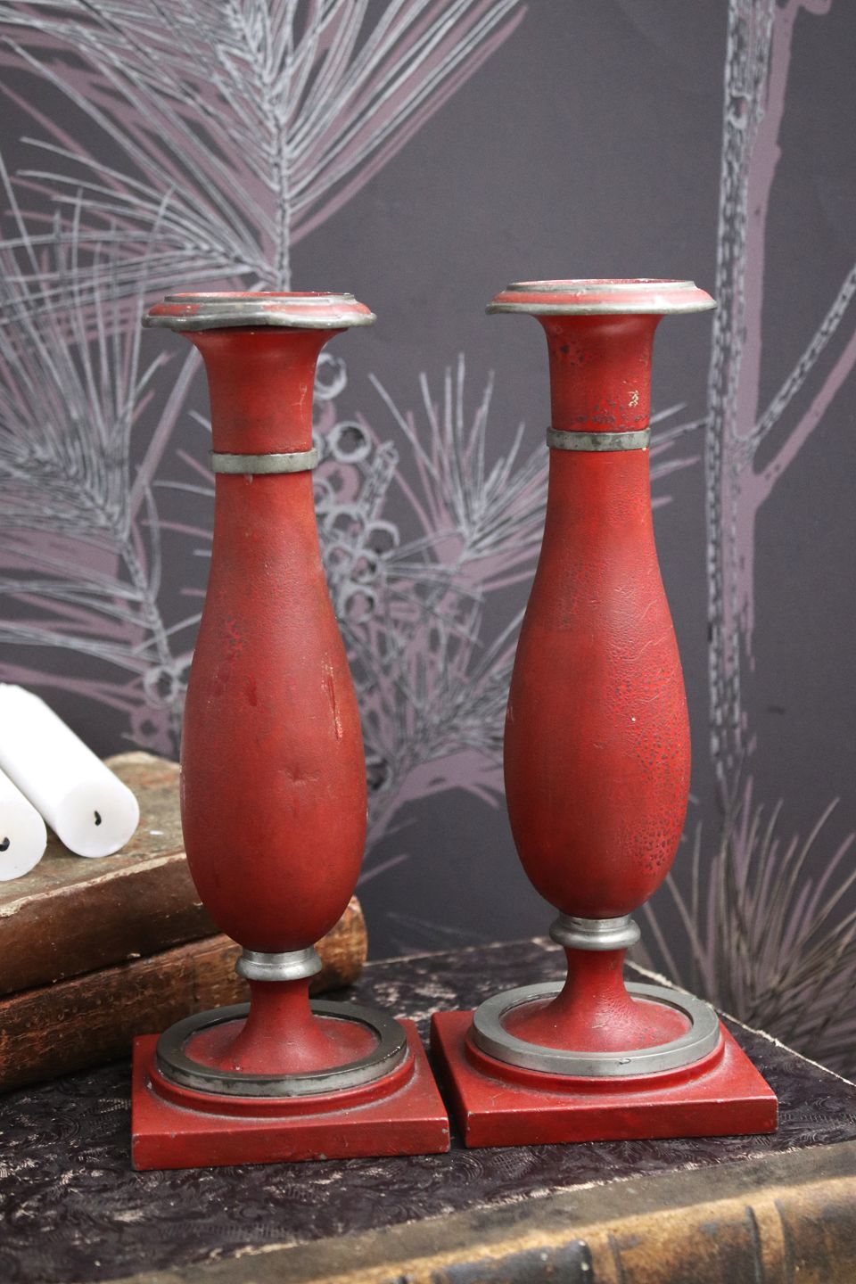 A pair of Augustenborg pewter candlesticks from around 1840 with red original paint.